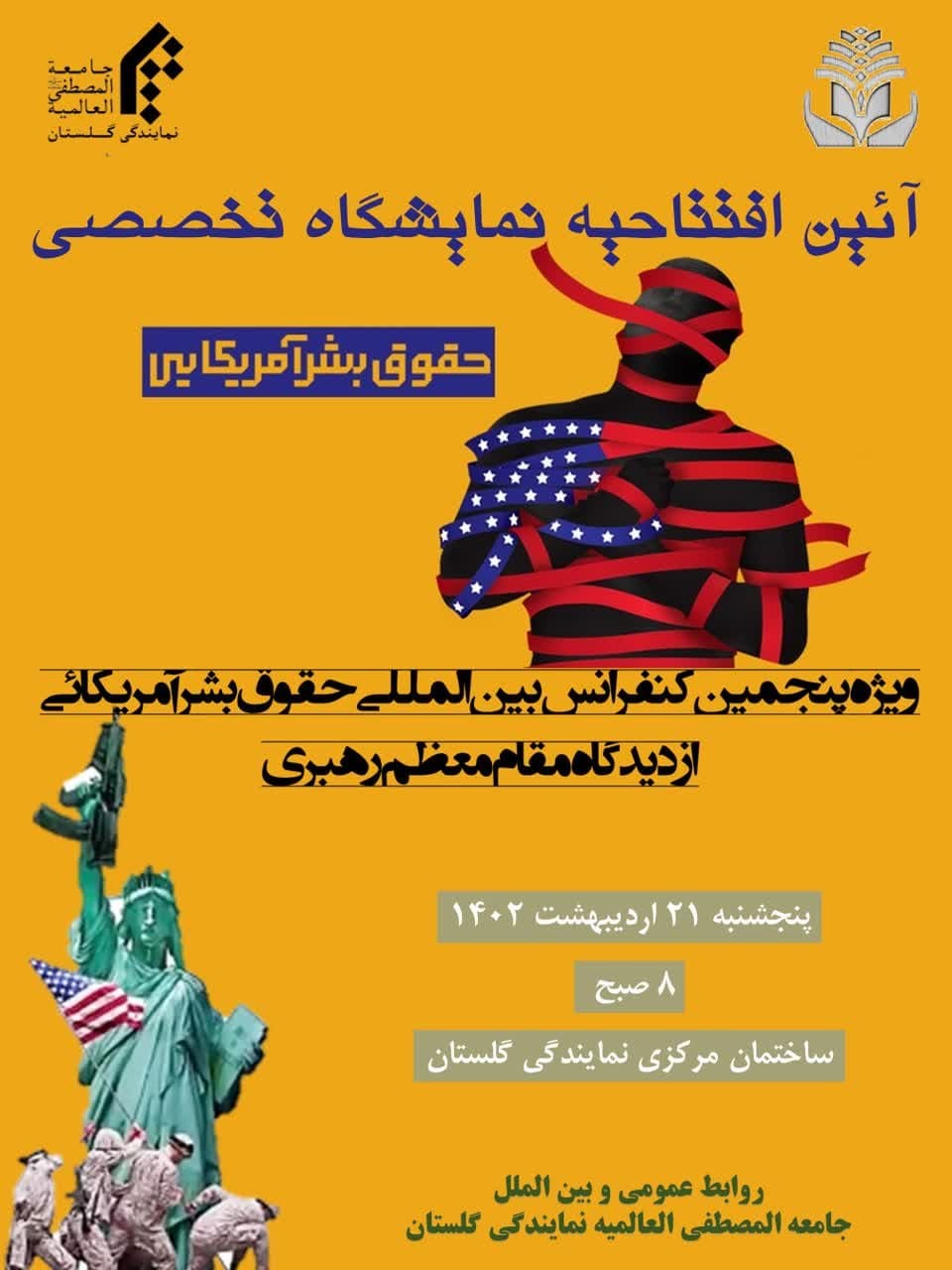 «پنجمین همایش بین المللی حقوق بشر امریکایی از منظر مقام معظم رهبری» در روز پنچ شنبه 21 اردیبهشت ماه در نمایندگی جامعه المصطفی گلستان برگزار خواهد شد.