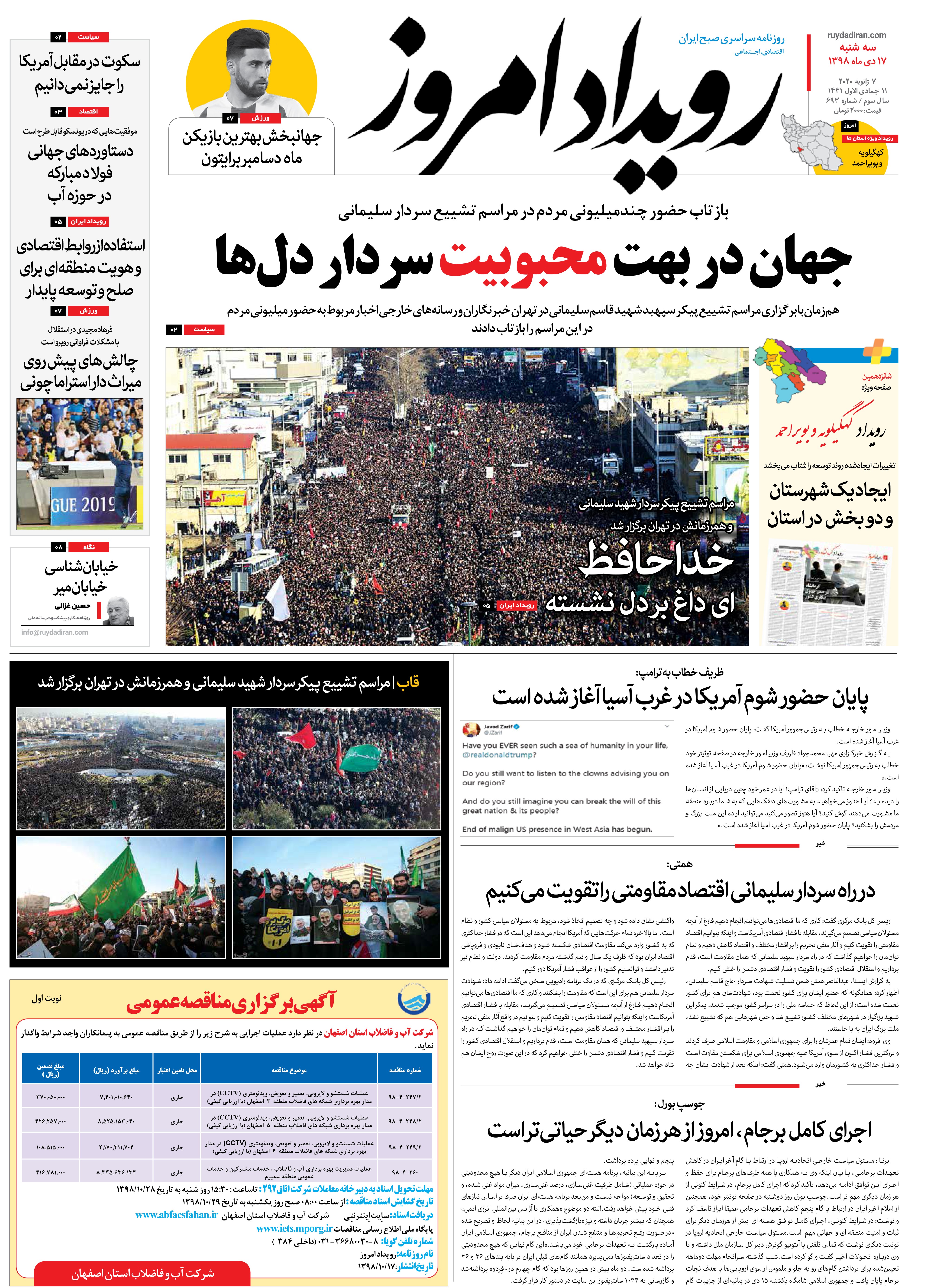 روزنامه رویداد امروز سه شنبه 17 دی 1398