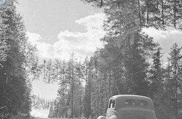 عکس فوق که بخشی از آرشیو عکاسی نیروهای نظامی فنلاند است، خودرویی را نشان میدهد که در امتداد جاده حرکت میکند؛ جایی در چند کیلومتری مرز اتحاد جماهیر شوروی. نکتهی جالب و البته عجیب این عکس، ردیفی از درختان کاج است که معلق بهنظر میرسند.