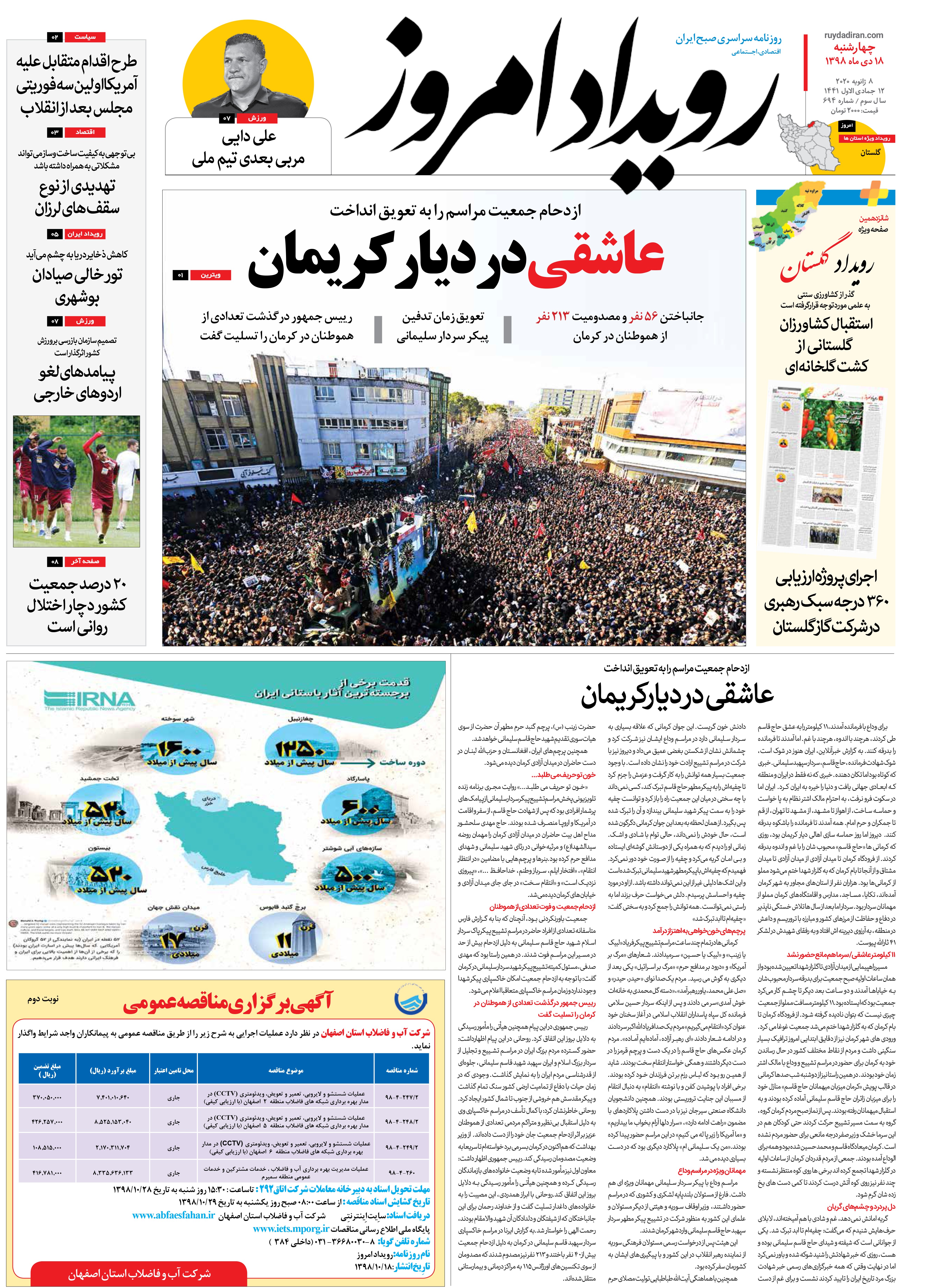 کد: 21467 | 18 دی 1398 ساعت 00:00 روزنامه رویداد امروز چهارشنبه ۱۸ دی ۱۳۹۸ روزنامه رویداد امروز رویداد ایران اصفهان اشتراک گذاری گزارش خطا × اشتراک گذاری مطلب: روزنامه رویداد امروز چهارشنبه ۱۸ دی ۱۳۹۸ فیسبوک اینستاگرام تلگرام ایکس (توییتر) ایتا بله روبیکا × گزارش خطا برای گزارش خطا با پست الکترونیکی: ruydadiran[at]gmail.com در ارتباط باشید