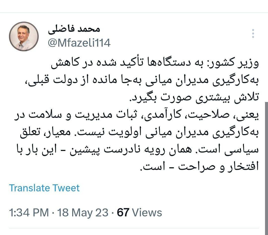 - یعنی صلاحیت، کارآمدی، ثبات مدیریت و سلامت در بهکارگیری مدیران میانی اولویت نیست.
