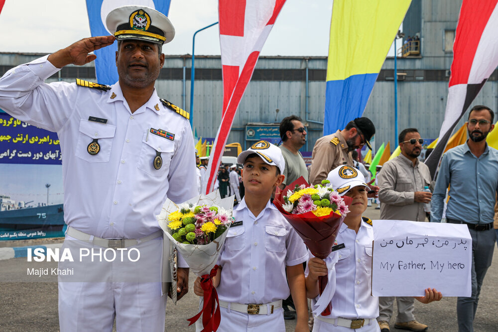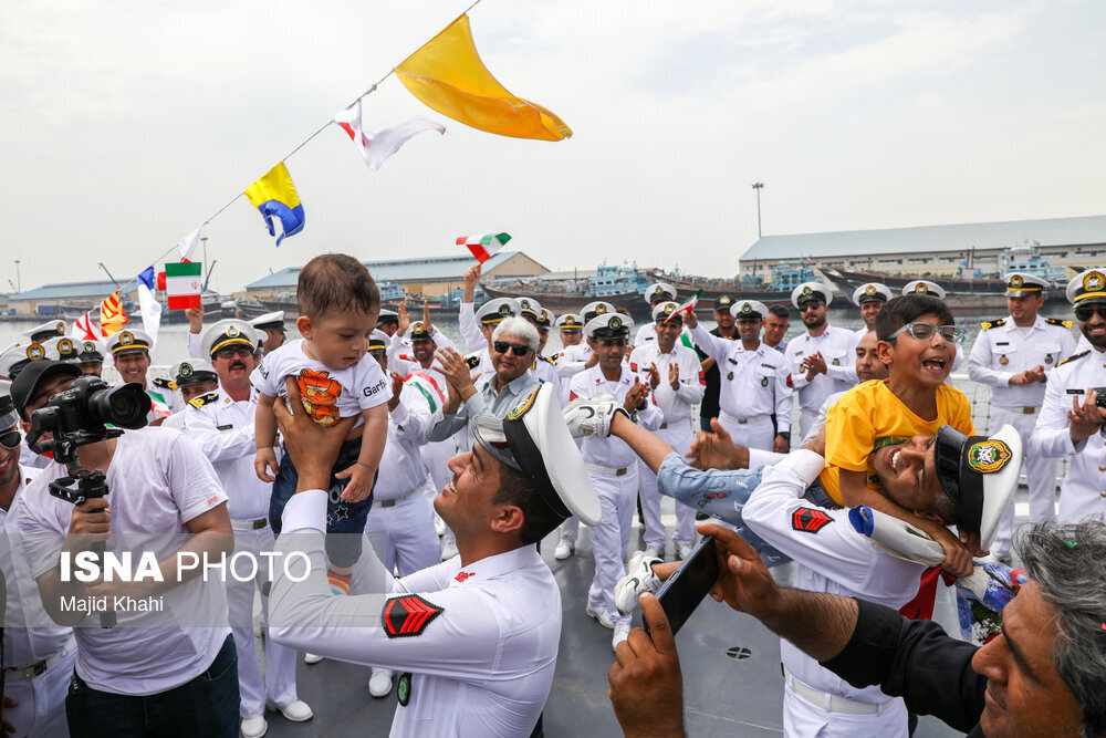 - کارکنان این ناوگروه مورد استقبال امیر دریادار «شهرام ایرانی» فرمانده نیروی دریایی ارتش و خانوادههای خود قرار گرفتند.