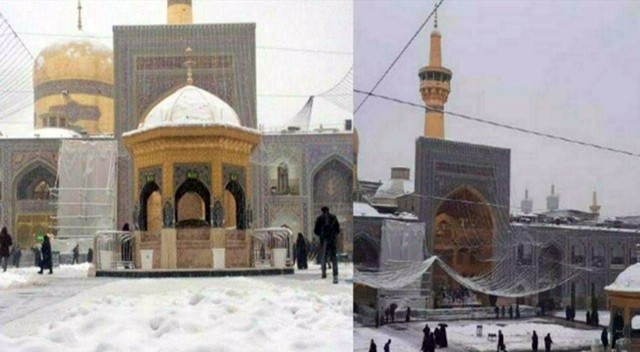 تصاویری از حال و هوای برفی حریم قدسی امام رئوف و همیاری مردم به خادمان حضرت رضا (علیه السلام) در برف روبی حرم رضوی را در ادامه مشاهده می‌کنید.