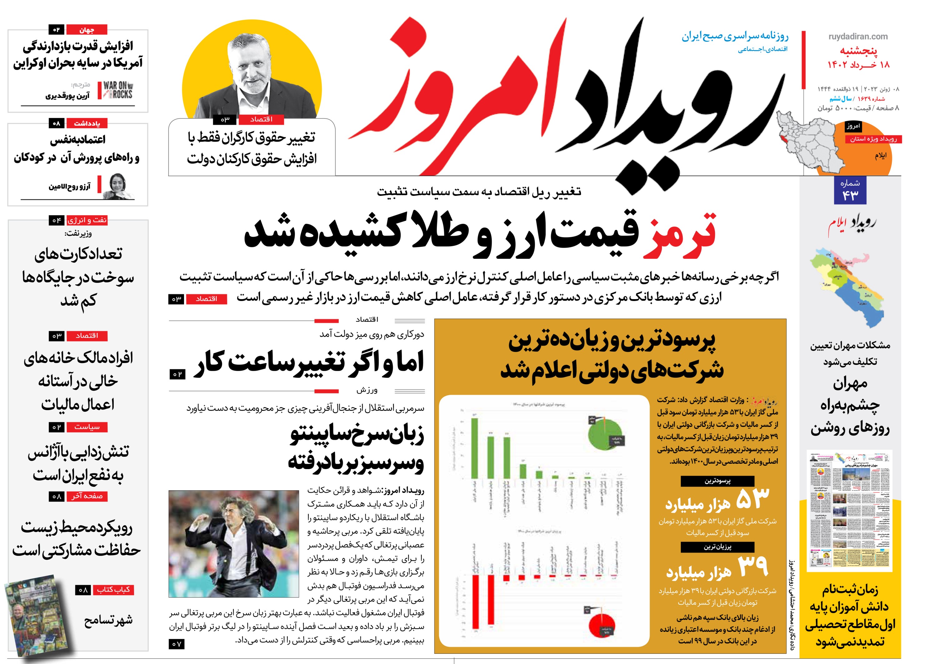 روزنامه رویداد امروز پنج شنبه ۱۸ خرداد ۱۴۰۲