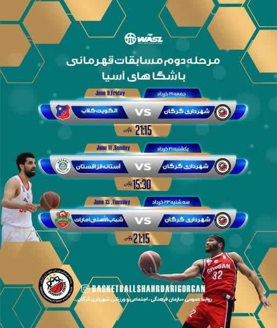 برنامه بازیهای تیم بسکتبال شهرداری گرگان در مرحله دوم مسابقات قهرمانی باشگاههای آسیا