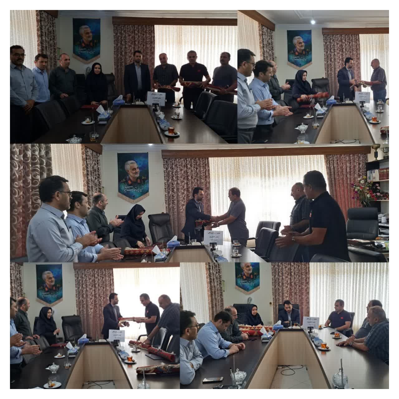 طی مراسمی که مدیر، معاون فنی، مسئول حراست، رئیس و کارشناس اداره تولیدات گیاهی شهرستان حضور داشتند از نمونه های استانی شهرستان با اهدا هدایا و لوح تقدیر در دفتر مدیریت تجلیل شد.
