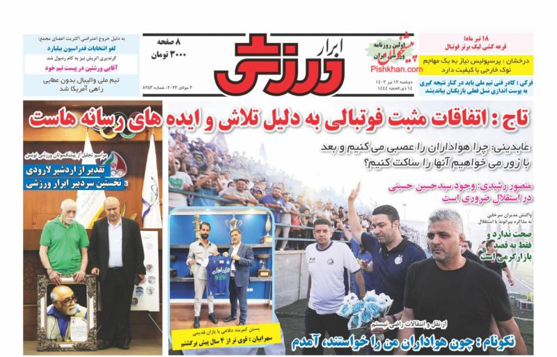 کد: 224342 | 12 تیر 1402 ساعت 05:30 صفحه نخست روزنامههای امروز دوشنبه 12 تیر 1402 صفحه نخست روزنامههای امروز دوشنبه 12 تیر 1402 روزنامه های سراسری مطبوعات کشور روزنامه اشتراک گذاری گزارش خطا × اشتراک گذاری مطلب: صفحه نخست روزنامههای امروز دوشنبه 12 تیر 1402 فیسبوک اینستاگرام تلگرام ایکس (توییتر) ایتا بله روبیکا × گزارش خطا برای گزارش خطا با پست الکترونیکی: ruydadiran[at]gmail.com در ارتباط باشید