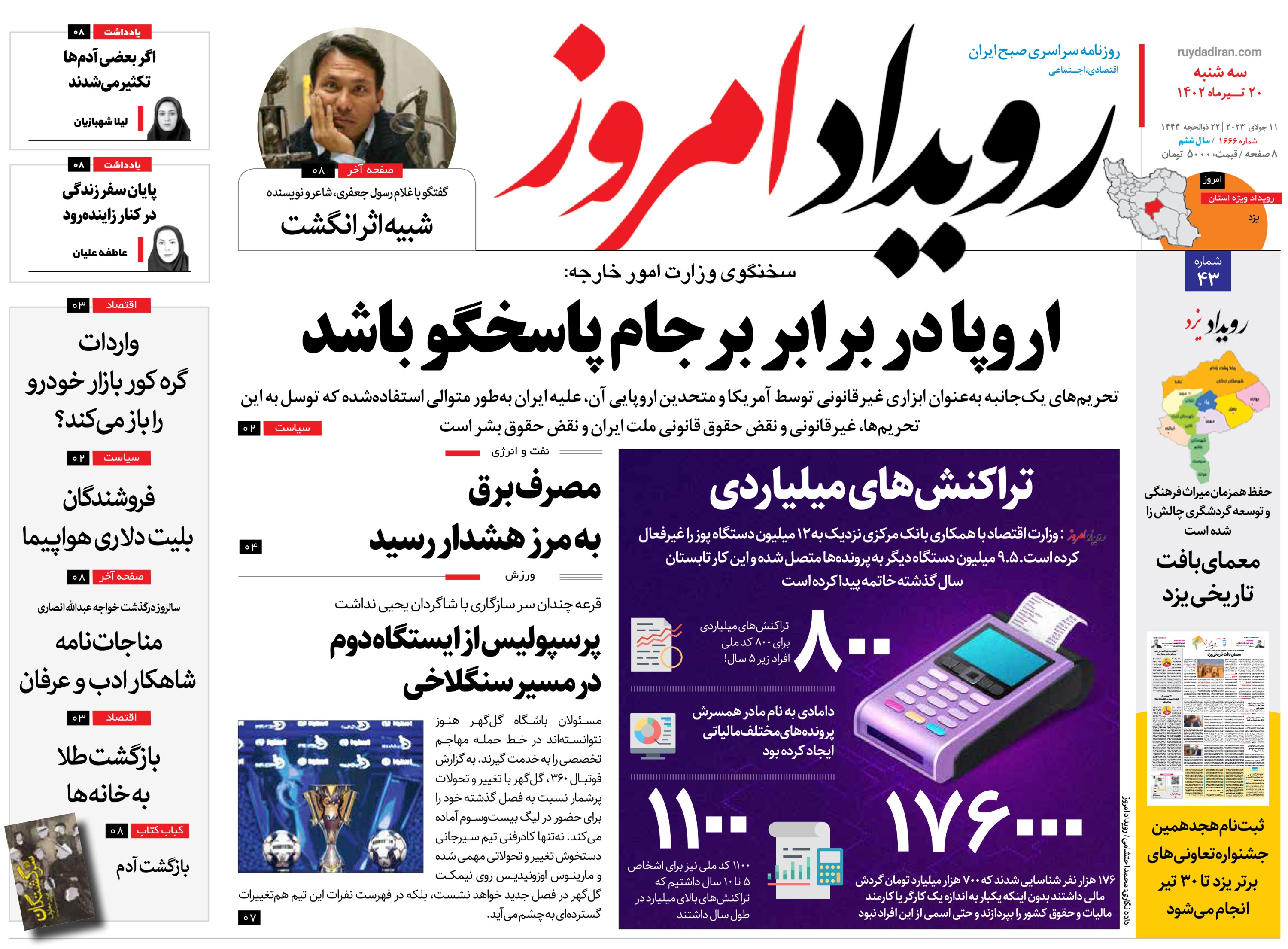 روزنامه رویداد امروز سه شنبه ۲۰ تیر ۱۴۰۲