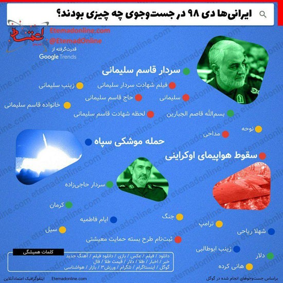 کد: 22833 | 01 بهمن 1398 ساعت 12:07 اینفوگرافیک؛ بیشترین جستو جو ایرانیها در فضای مجازی ایرانیها دیماه ۹۸ در فضای مجازی چه چیزی را جستجو میکردند؟ بیشترین جست و جو ایرانی ها در فضای مجازی فضای مجازی اشتراک گذاری گزارش خطا × اشتراک گذاری مطلب: اینفوگرافیک؛ بیشترین جستو جو ایرانیها در فضای مجازی فیسبوک اینستاگرام تلگرام ایکس (توییتر) ایتا بله روبیکا × گزارش خطا برای گزارش خطا با پست الکترونیکی: ruydadiran[at]gmail.com در ارتباط باشید