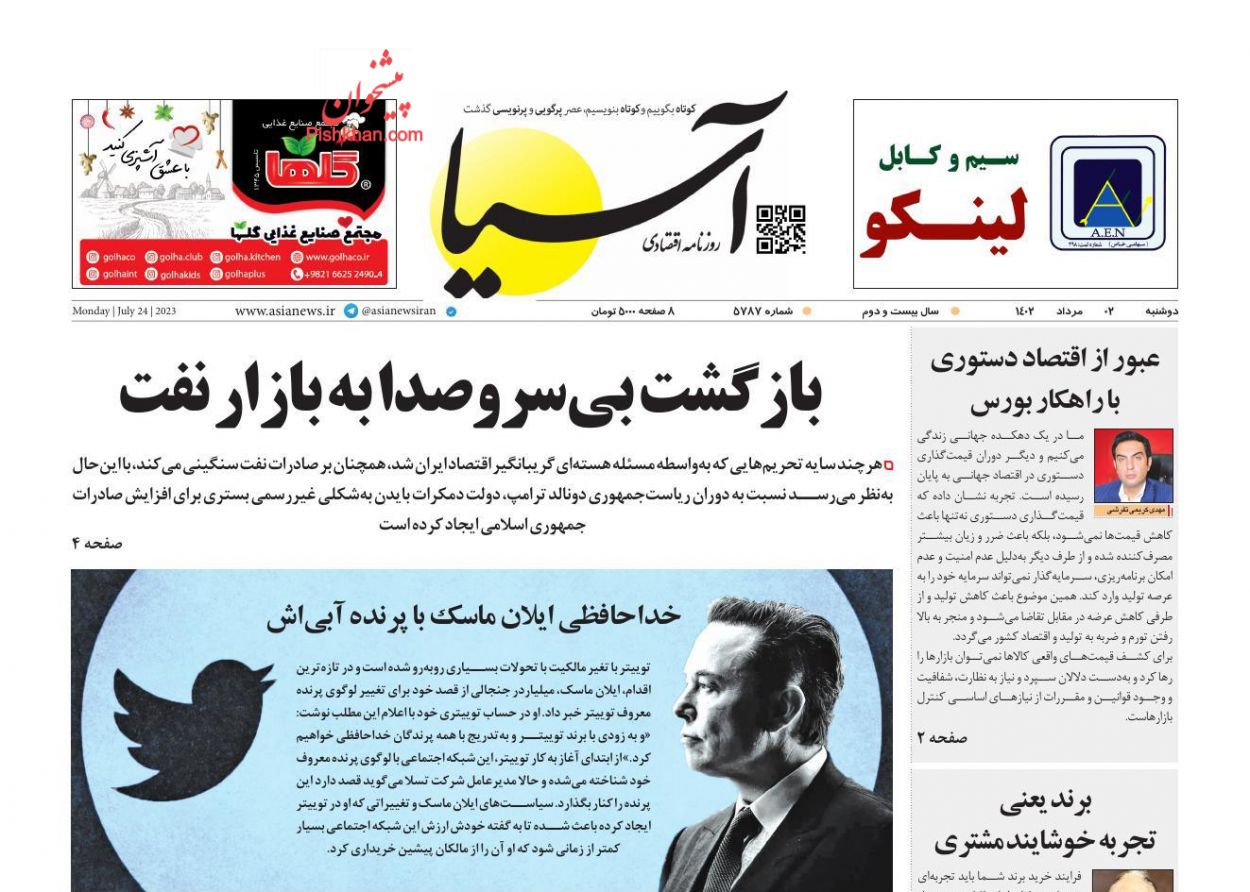 کد: 228635 | 02 مرداد 1402 ساعت 05:23 صفحه نخست روزنامههای امروز دوشنبه2 مرداد 1402 صفحه نخست روزنامههای امروز دوشنبه2 مرداد 1402 روزنامه های سراسری مطبوعات کشور روزنامه اشتراک گذاری گزارش خطا × اشتراک گذاری مطلب: صفحه نخست روزنامههای امروز دوشنبه2 مرداد 1402 فیسبوک اینستاگرام تلگرام ایکس (توییتر) ایتا بله روبیکا × گزارش خطا برای گزارش خطا با پست الکترونیکی: ruydadiran[at]gmail.com در ارتباط باشید