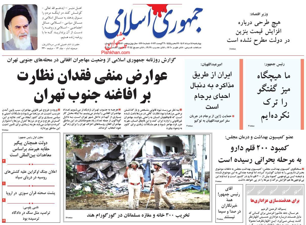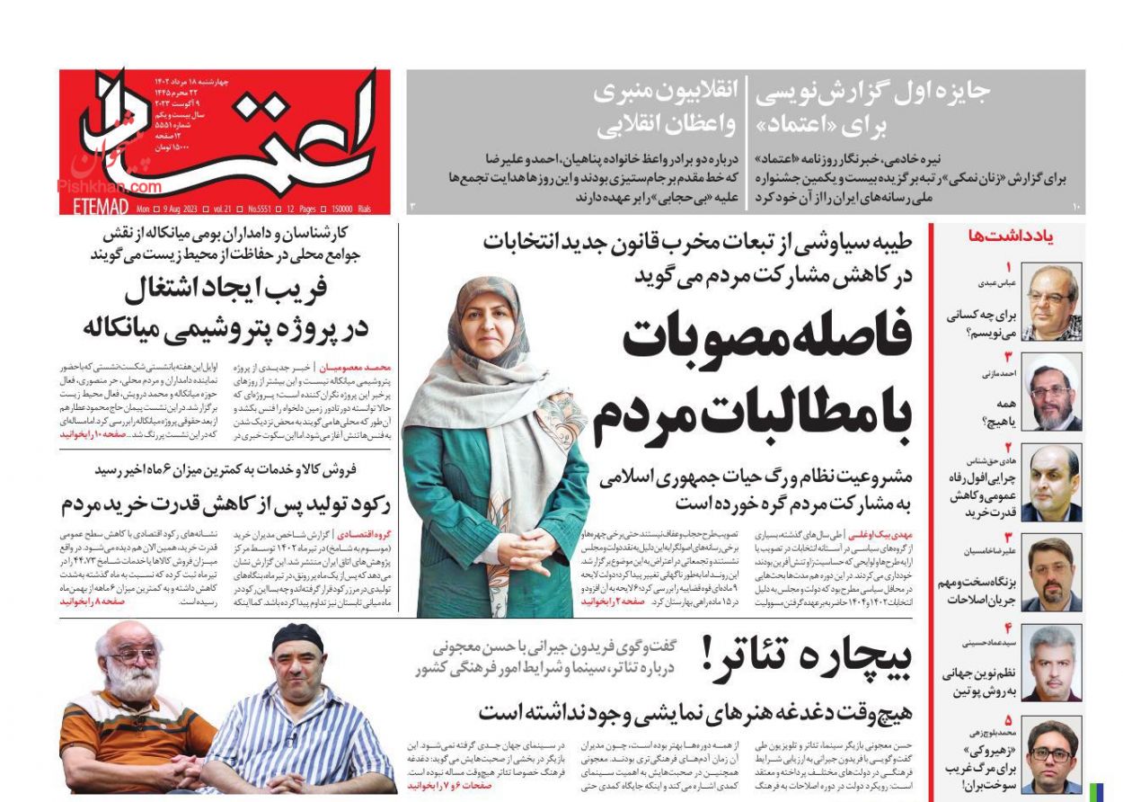 صفحه نخست روزنامه‌های امروز چهارشنبه 18 مرداد 1402