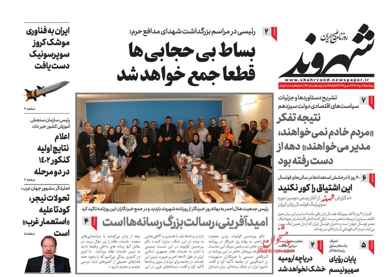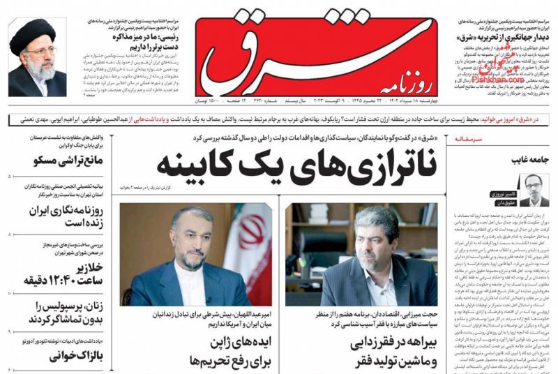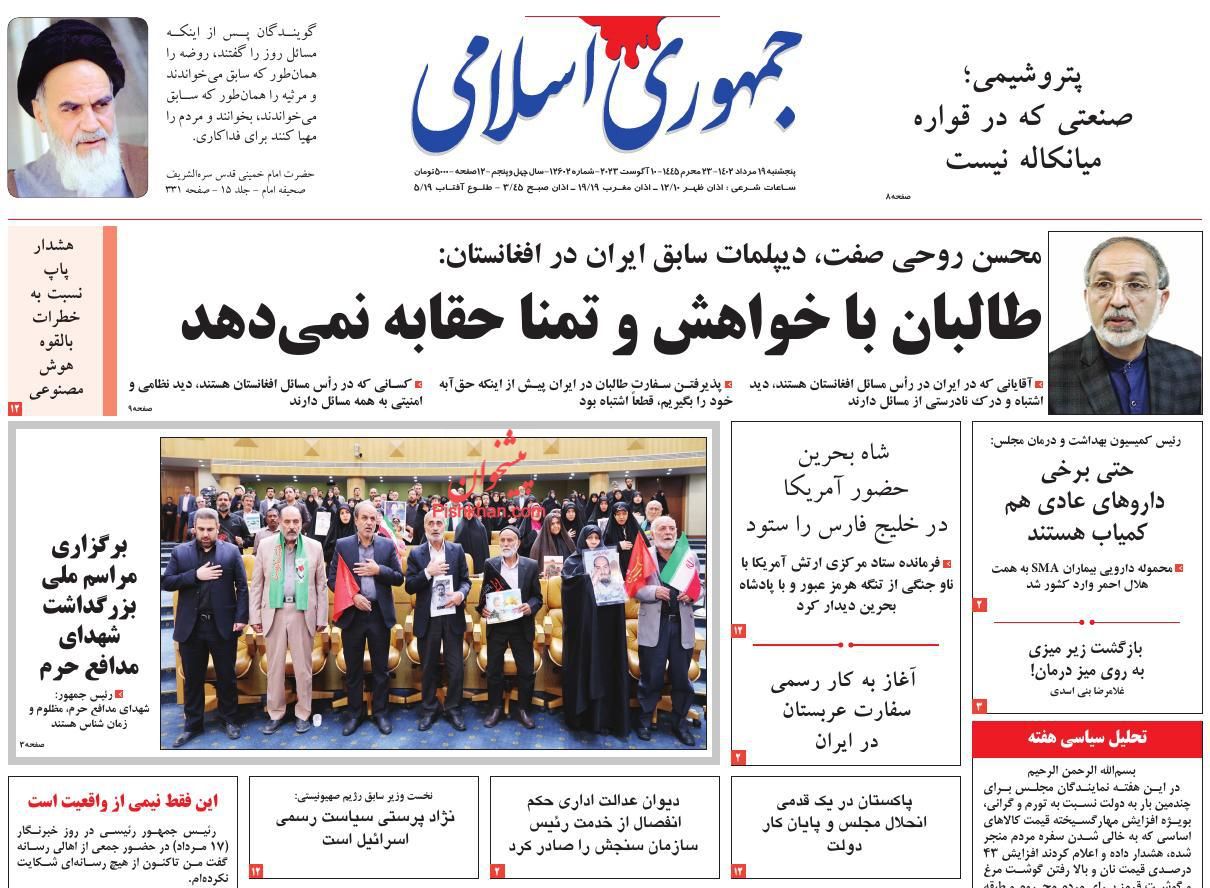 صفحه نخست روزنامه‌های امروز پنجشنبه 19 مرداد 1402