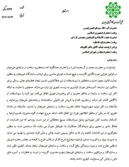 شهردار شیراز و شهرداران ۱۷ کلان‌شهر طی نامه‌ای خطاب به سران قوا؛ خواستار جرم‌انگاری ساخت‌وساز غیرمجاز شدند.