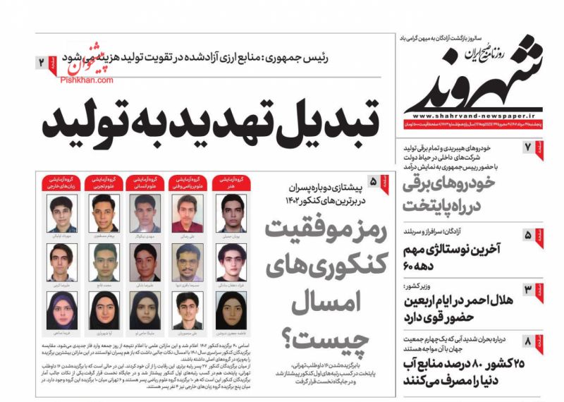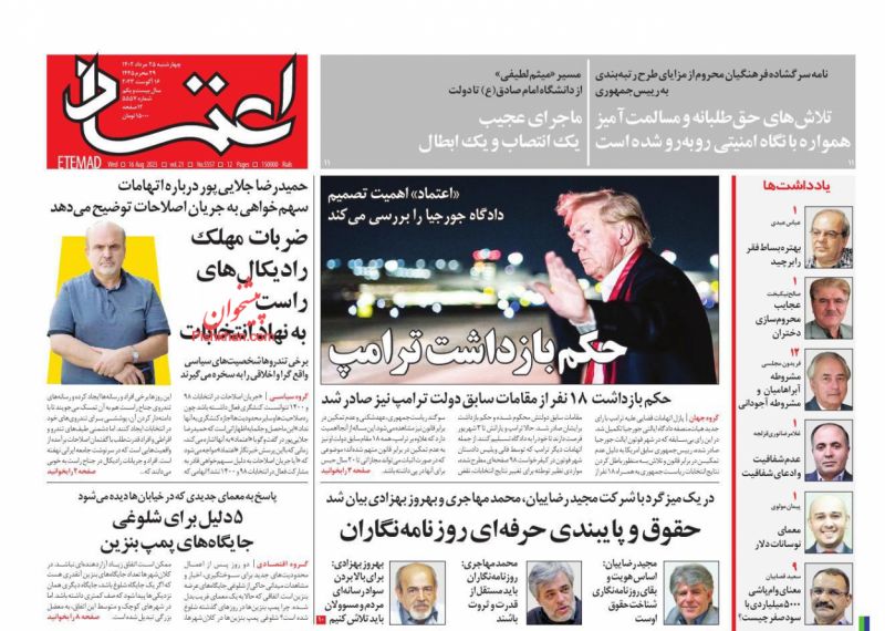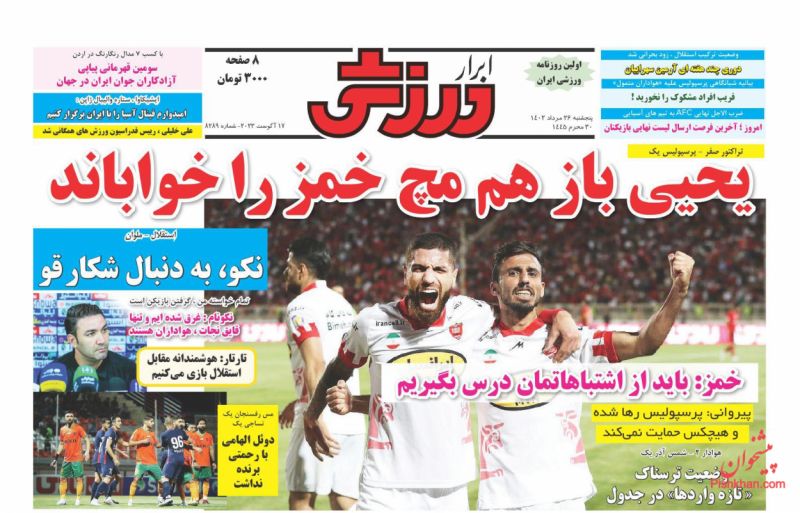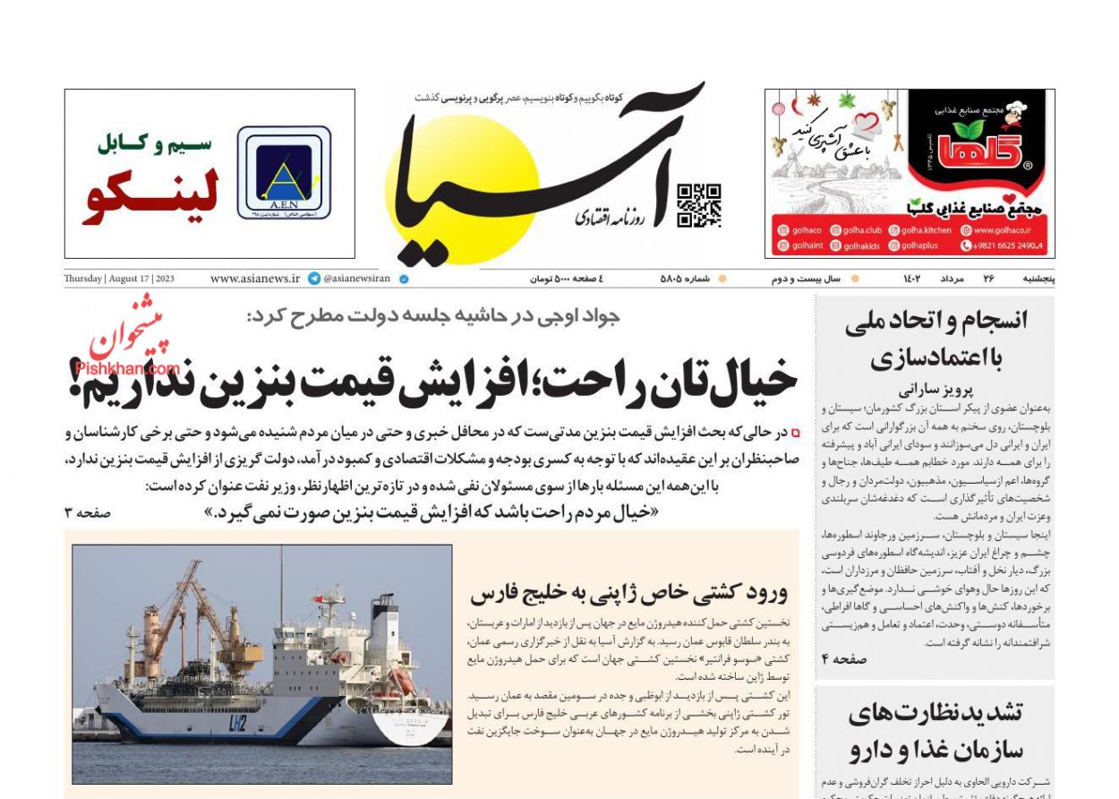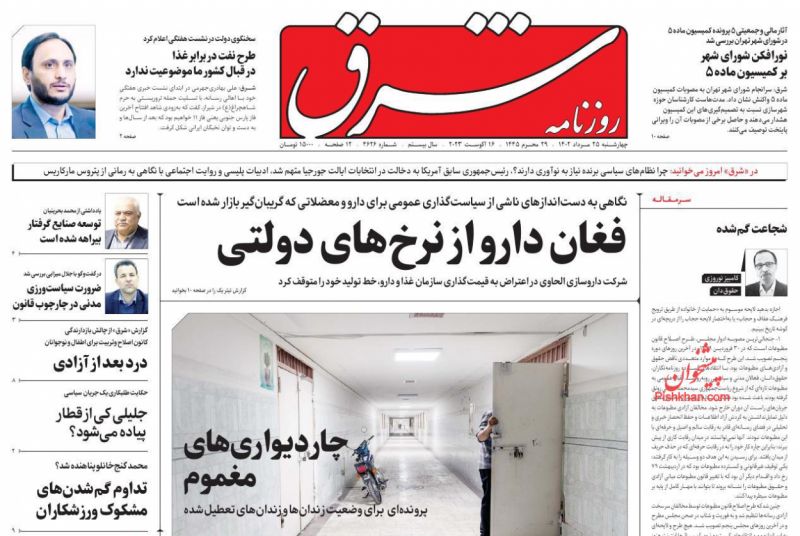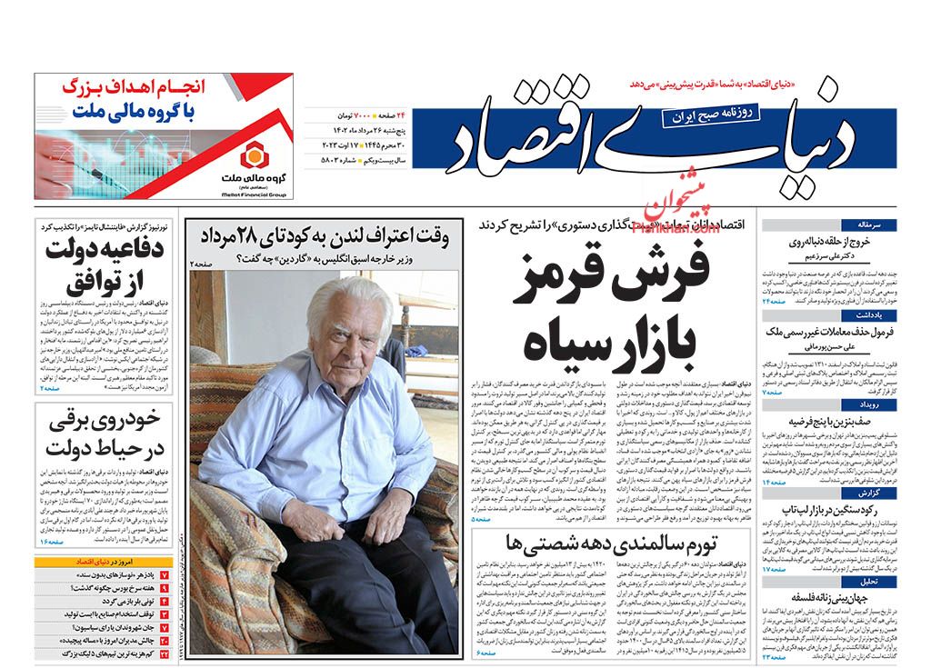 صفحه نخست روزنامه‌های امروز پنجشنبه 26 مرداد 1402