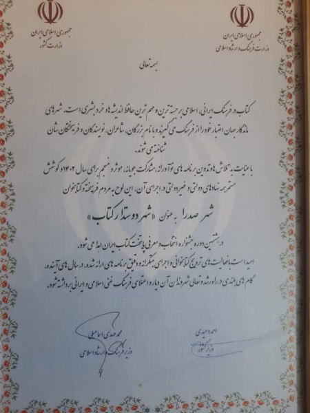 صدرا در جمع بهترین شهرهای دوستدار کتاب کشور قرار گرفت
