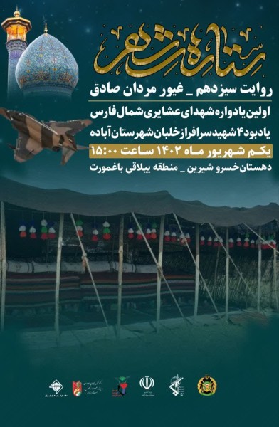 او همچنین به روایت سیزدهم سلسله برنامه‌های ستاره‌های شهر پرداخت و عنوان کرد: در این ایستگاه که روایت غیورمردان صادق اجرا می‌شود، نخستین یادواره شهدای شهدای عشایری شمال فارس همراه با یادبود چهار شهید سرافراز خلبان شهرستان آباده نیز برگزار می‌شود‌.
