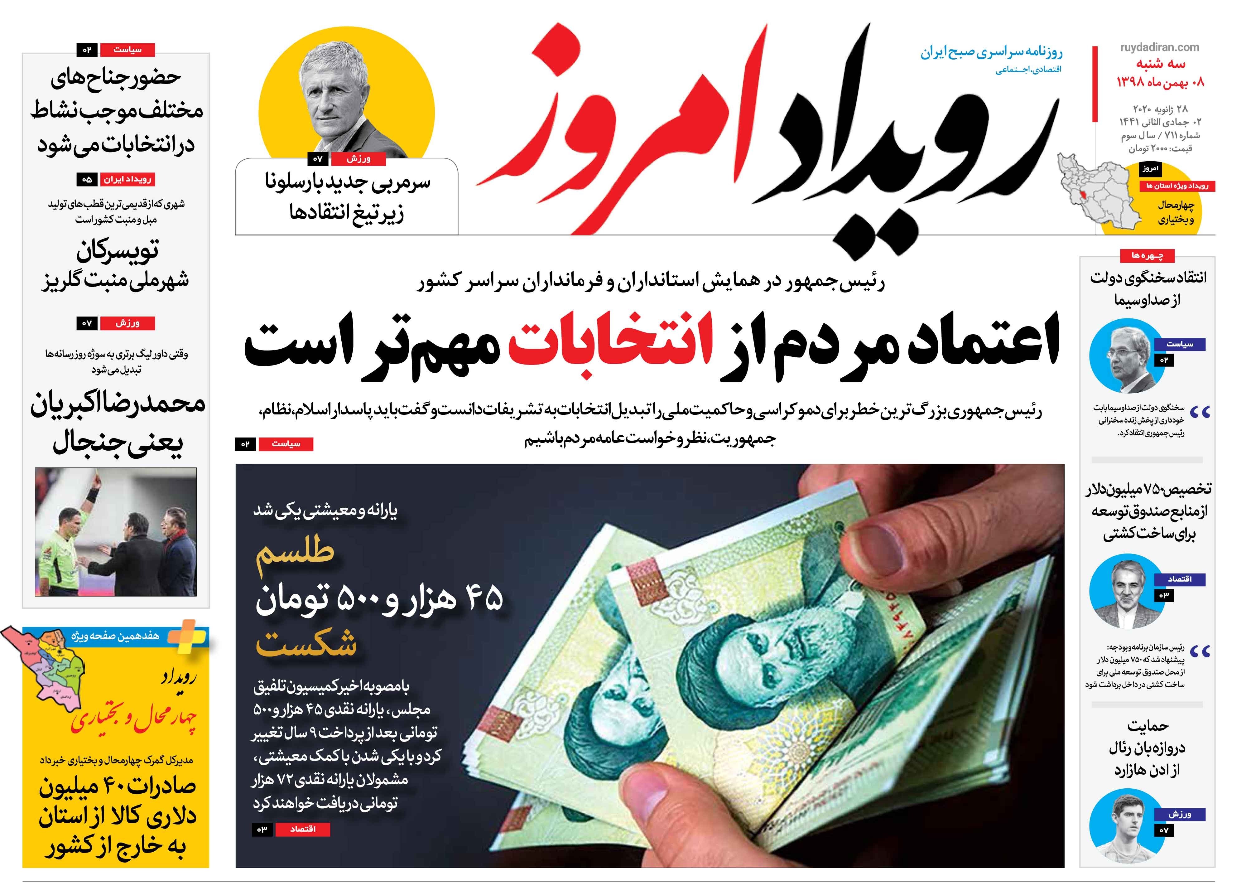کد: 23500 | 08 بهمن 1398 ساعت 00:00 روزنامه رویداد امروز سه شنبه ۸ بهمن ۱۳۹۸ روزنامه رویداد امروز رویداد ایران اصفهان اشتراک گذاری گزارش خطا × اشتراک گذاری مطلب: روزنامه رویداد امروز سه شنبه ۸ بهمن ۱۳۹۸ فیسبوک اینستاگرام تلگرام ایکس (توییتر) ایتا بله روبیکا × گزارش خطا برای گزارش خطا با پست الکترونیکی: ruydadiran[at]gmail.com در ارتباط باشید