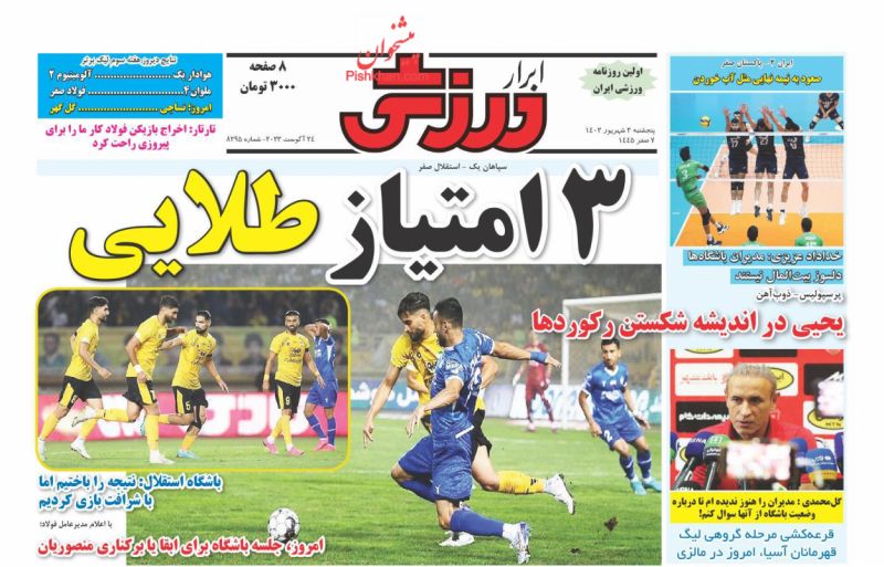 صفحه نخست روزنامه‌های امروز پنجشنبه 2 شهریور 1402