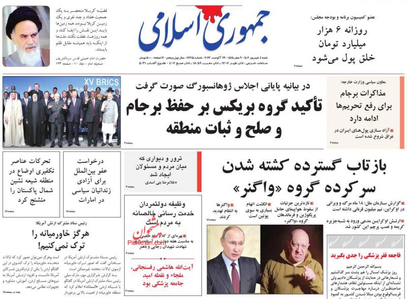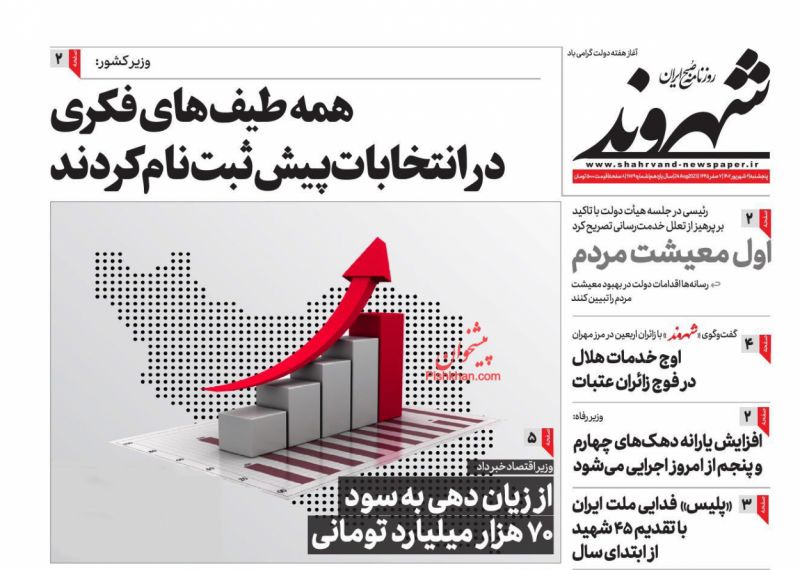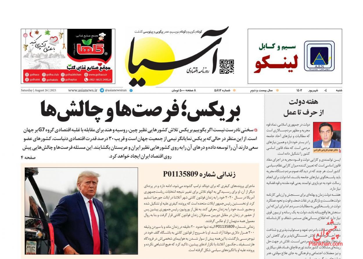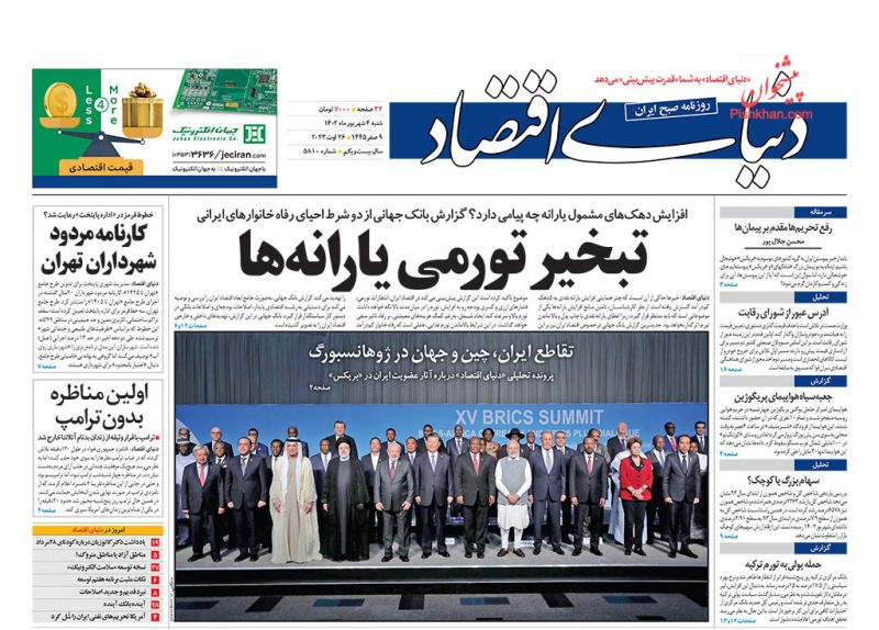 صفحه نخست روزنامه‌های امروز شنبه4 شهریور 1402
