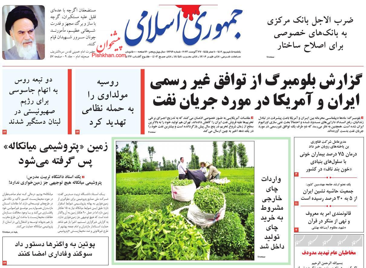 صفحه نخست روزنامه‌های امروز یکشنبه 5 شهریور 1402
