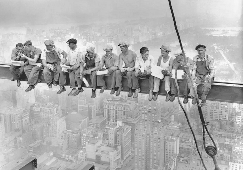 در این عکس نه تنها شکوه و عظمت ساختمان بلکه همدلی و پیوند بین کارگران تازه مهاجرت‌کرده نیز خودنمایی می‌کرد؛ آن‌ها با حالتی عادی و صمیمانه در ارتفاعی کاملا غیرعادی مشغول گفتگو و صرف غذا بودند.