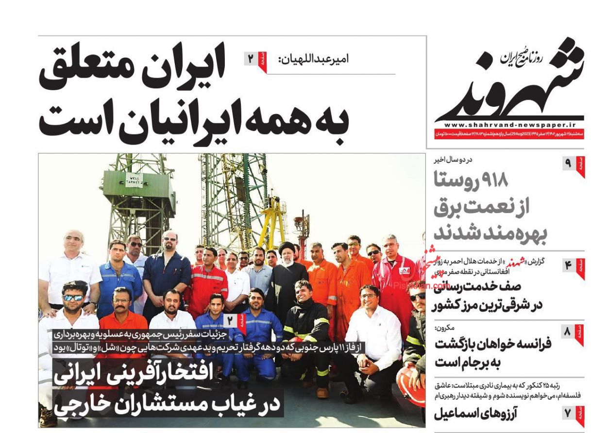 صفحه نخست روزنامه‌های امروز سه شنبه 7 شهریور 1402