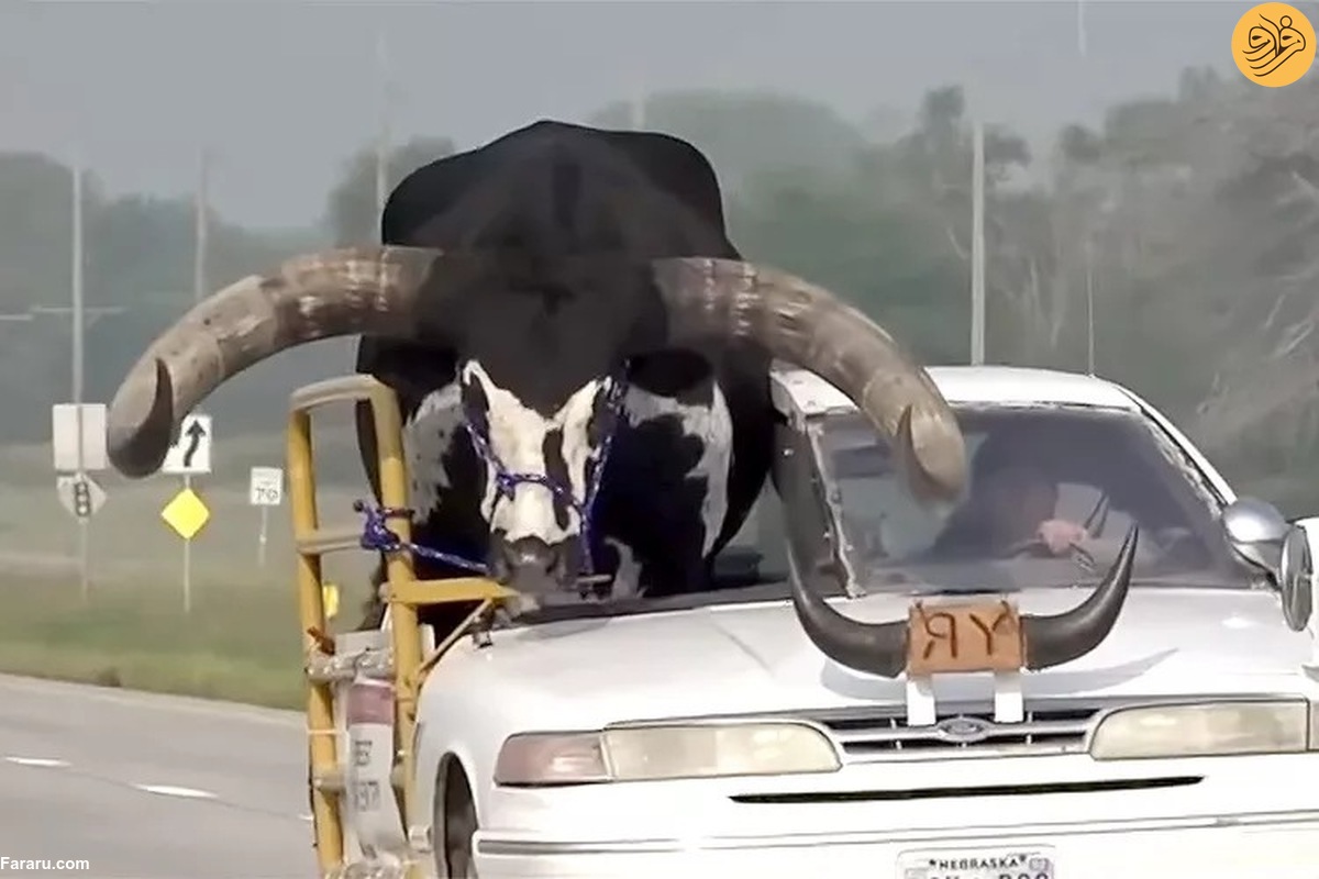 فرارو- پلیس آمریکا در ایالت نبراسکا یک خودروی سواری و مسافر غولپیکرش که یک گاو نر بود را متوقف کرد.