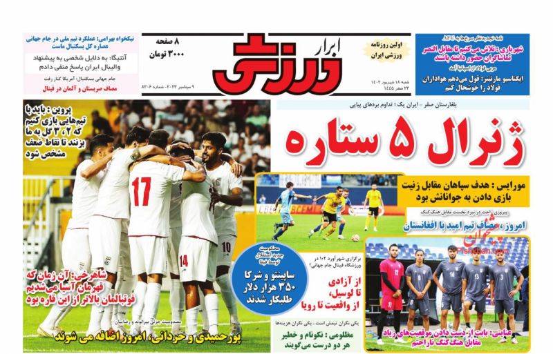 کد: 238477 | 18 شهریور 1402 ساعت 05:48 صفحه نخست روزنامههای امروز شنبه 18 شهریور 1402 صفحه نخست روزنامههای امروز شنبه 18 شهریور 1402 روزنامه های سراسری مطبوعات کشور روزنامه اشتراک گذاری گزارش خطا × اشتراک گذاری مطلب: صفحه نخست روزنامههای امروز شنبه 18 شهریور 1402 فیسبوک اینستاگرام تلگرام ایکس (توییتر) ایتا بله روبیکا × گزارش خطا برای گزارش خطا با پست الکترونیکی: ruydadiran[at]gmail.com در ارتباط باشید