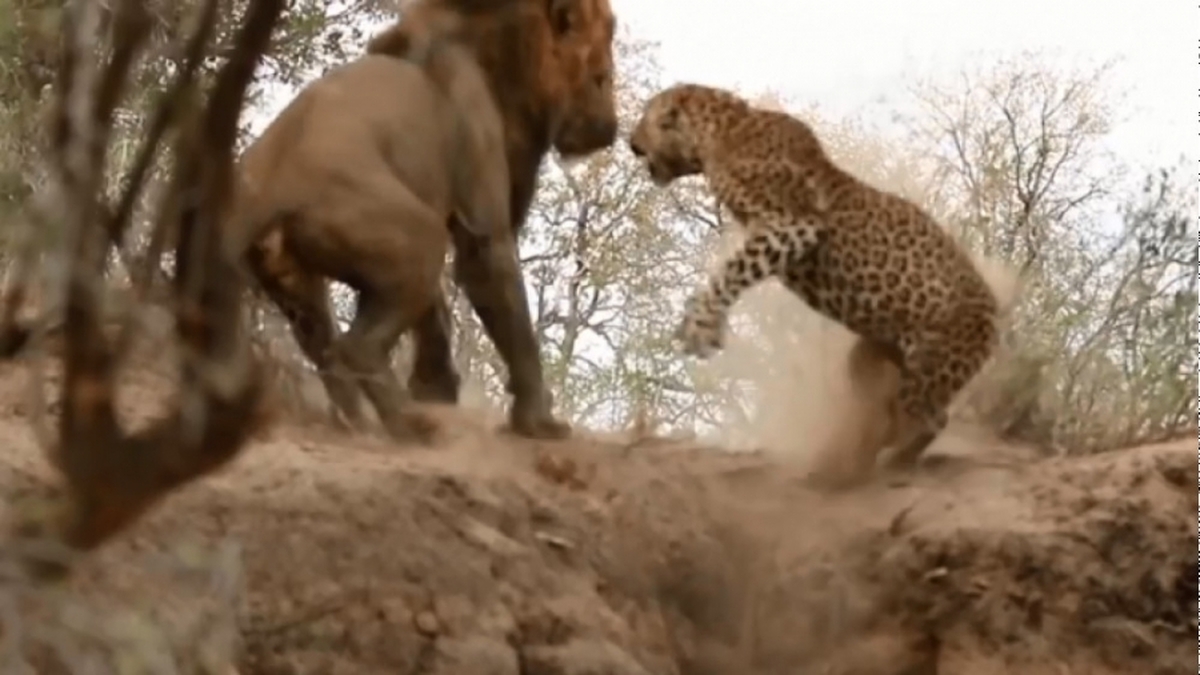 ( ویدیو) رویارویی ترسناک یک شیر و پلنگ