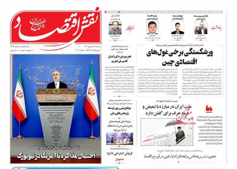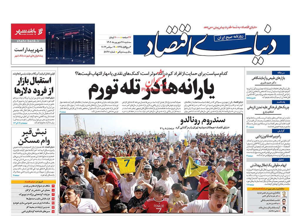 صفحه نخست روزنامه‌های امروز سه شنبه 28 شهریور 1402