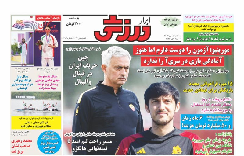 کد: 245875 | 04 مهر 1402 ساعت 06:02 صفحه نخست روزنامههای امروز سه شنبه 4 مهر 1402 صفحه نخست روزنامههای امروز سه شنبه 4 مهر 1402 روزنامه های سراسری مطبوعات کشور روزنامه اشتراک گذاری گزارش خطا × اشتراک گذاری مطلب: صفحه نخست روزنامههای امروز سه شنبه 4 مهر 1402 فیسبوک اینستاگرام تلگرام ایکس (توییتر) ایتا بله روبیکا × گزارش خطا برای گزارش خطا با پست الکترونیکی: ruydadiran[at]gmail.com در ارتباط باشید