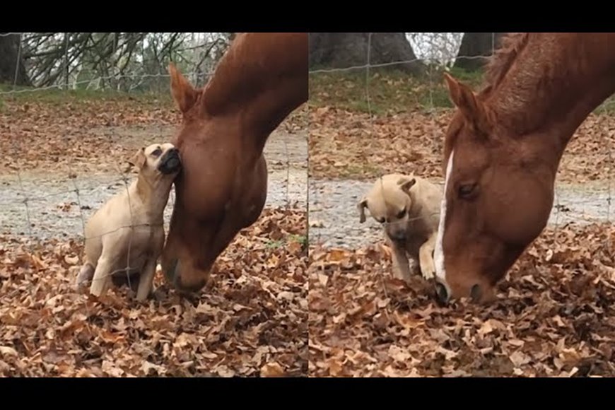 یک کشاورز اخیرا متوجه شده است که یک سگ غریبه هر روز به مزرعه او می آید و برای مدتی با یکی از اسب های مزرعه همنشین می شود. روابط این موجود بسیار عجیب و باورنکردنی به نظر می رسید زیرا هر روز این دو موجود به شکل عاشقانه ای از پشت حفاظ سیمی همدیگر را بغل می کنند. کشاورز هنوز نمی داند که این دوستی از کجا شکل گرفته است اما به گفته خودش از دیدن آن لذت می برد.
