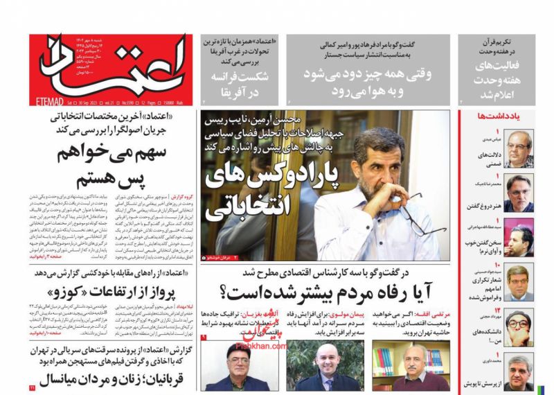 کد: 246688 | 08 مهر 1402 ساعت 06:13 صفحه نخست روزنامههای امروز شنبه 8 مهر 1402 صفحه نخست روزنامههای امروز شنبه 8 مهر 1402 روزنامه های سراسری مطبوعات کشور روزنامه اشتراک گذاری گزارش خطا × اشتراک گذاری مطلب: صفحه نخست روزنامههای امروز شنبه 8 مهر 1402 فیسبوک اینستاگرام تلگرام ایکس (توییتر) ایتا بله روبیکا × گزارش خطا برای گزارش خطا با پست الکترونیکی: ruydadiran[at]gmail.com در ارتباط باشید