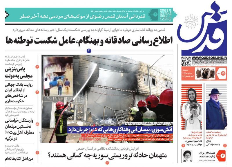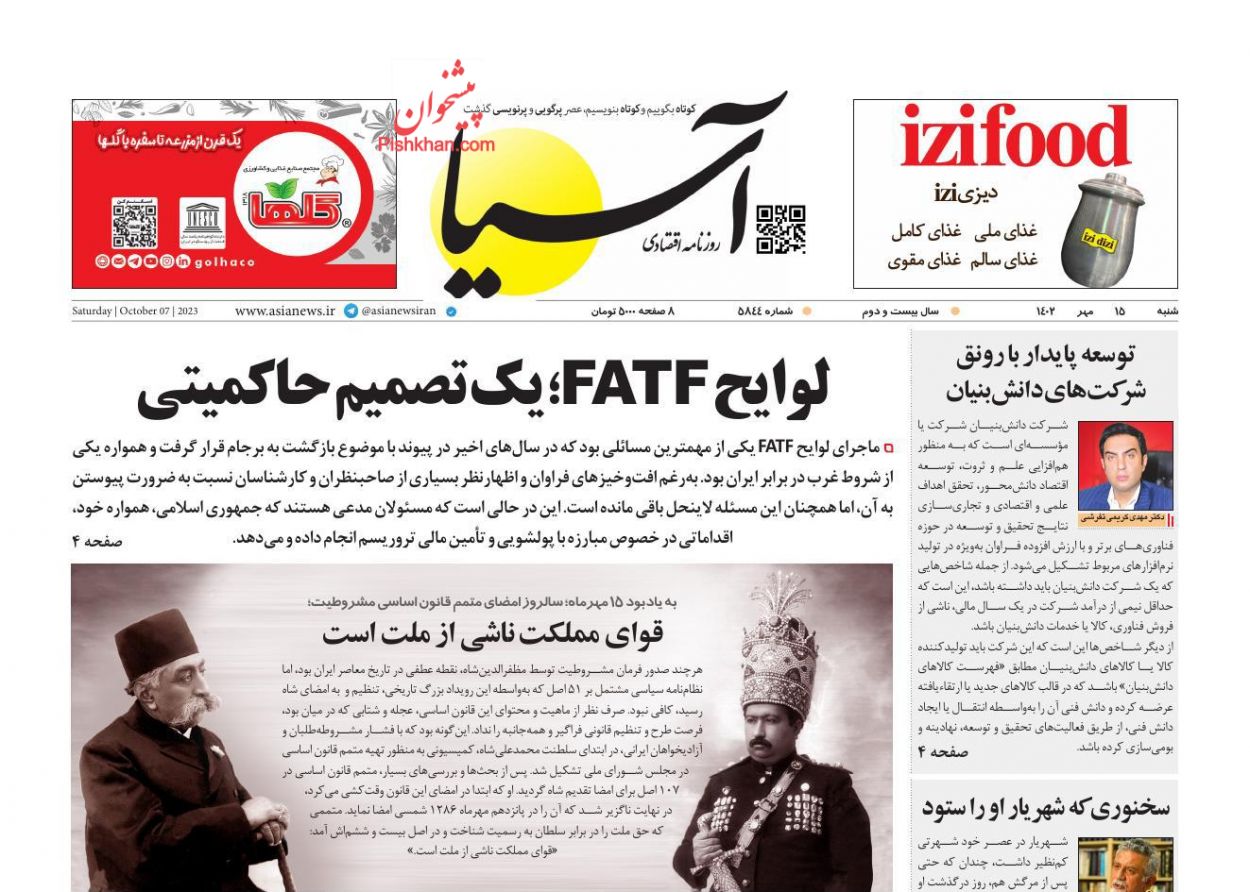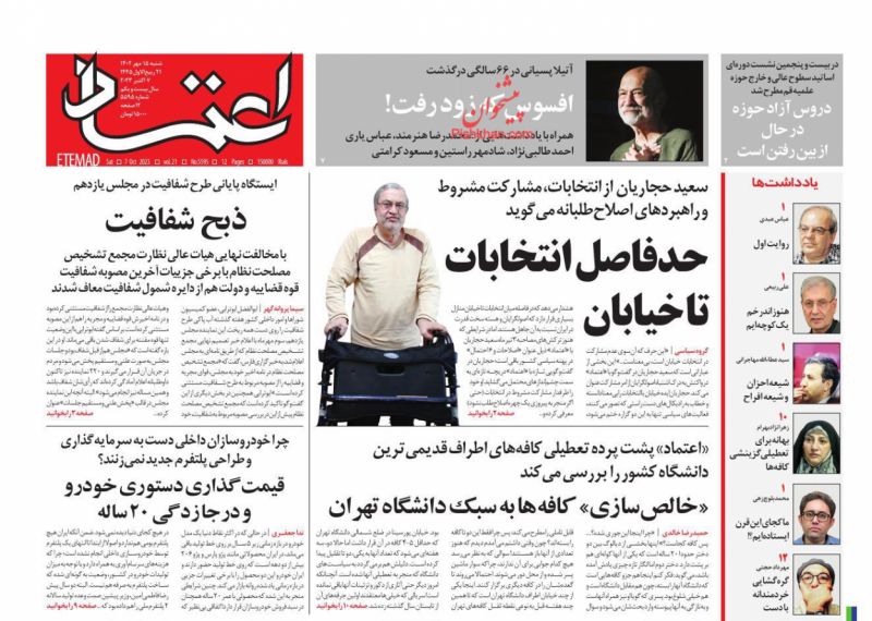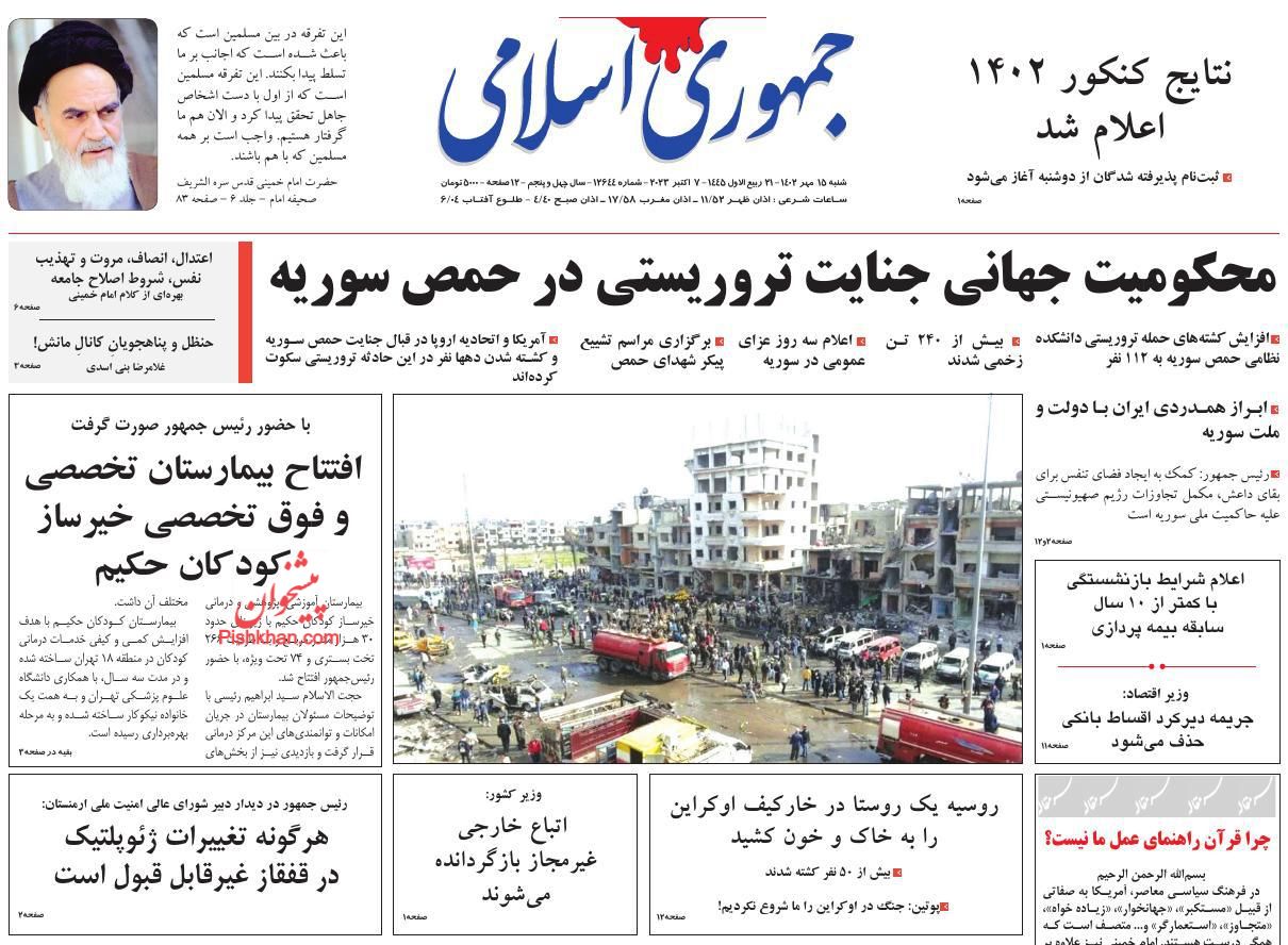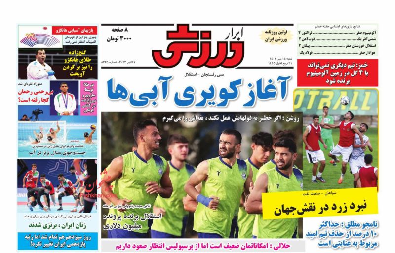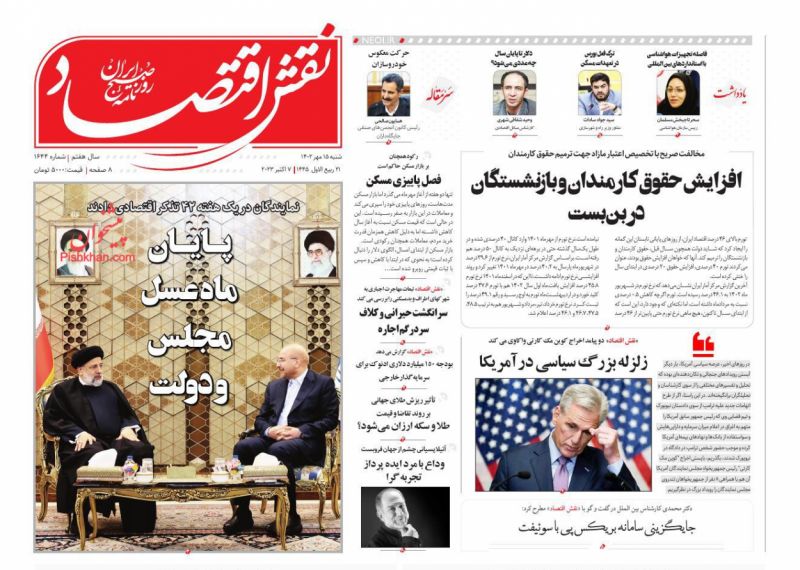 صفحه نخست روزنامه‌های امروز شنبه 15 مهر 1402