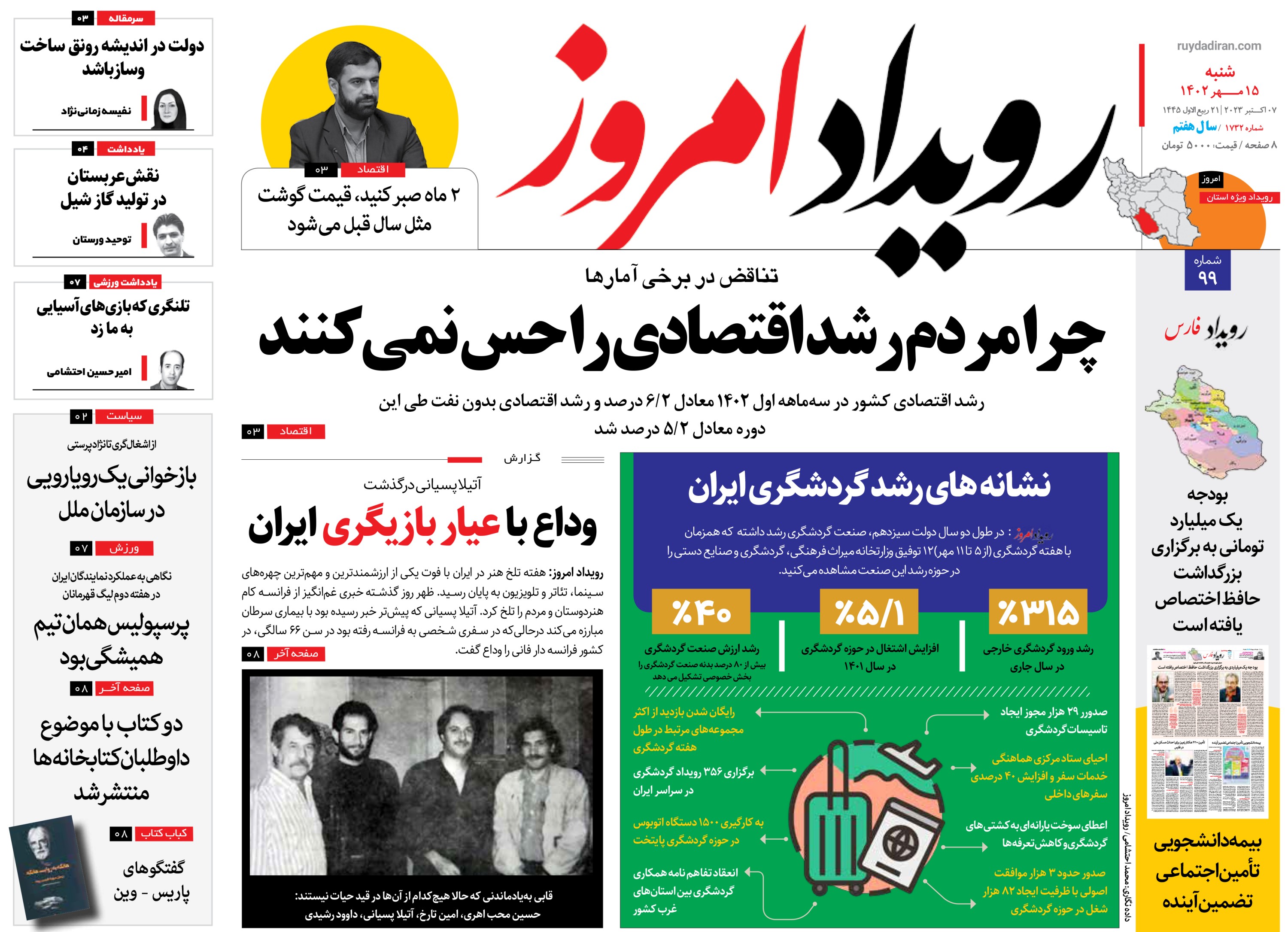 روزنامه رویداد امروز شنبه ۱۵ مهر ۱۴۰۲