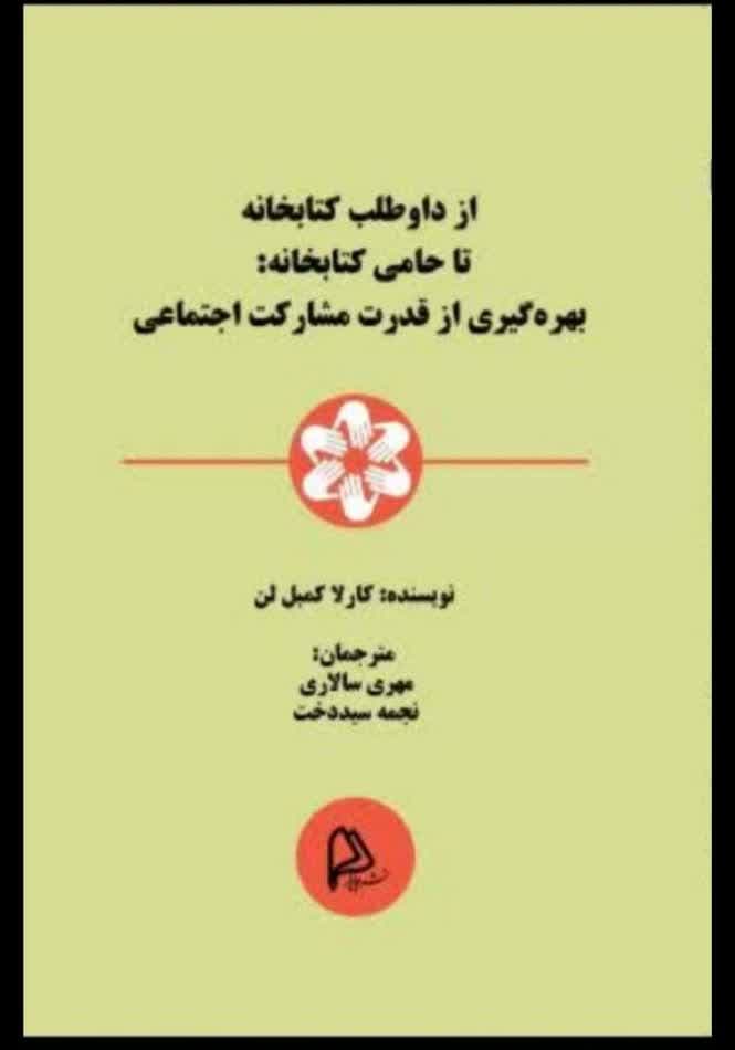 کتاب «از داوطلب کتابخانه تا حامی کتابخانه: بهره گیری از قدرت مشارکت اجتماعی» نوشته کارلا کمیل لن و ترجمه مهری سالاری و نجمه سیددخت توسط نشر چاپار منتشر شده است. این کتاب ۲۶۳ صفحه ای با قیمت ۱۳۵ هزار تومان در ده فصل به مزایای جذب داوطلبان، شرح وظایف، استخدام داوطلبان، مصاحبه و گزینش داوطلبان، راهنمایی و آموزش، عوامل موفقیت مشارکت داوطلبان و ارزیابی داوطلبان در حوزه کتابخانههای عمومی پرداخته است. این کتاب قرار است راهنمای کتابخانههایی باشد که میخواهند مشارکت داوطلبانه را تقویت کنند تا خدمات خود را بسط و توسعه دهند، مراجعان جدیدی پیدا کنند و در این راه حامیان و طرفدارانی را به دست آورند. از طریق تکنیکهای معرفی شده در این کتاب میتوان از داوطلبان کتابخانه به عنوان سفیر، حامی و مدافع کتابخانه استفاده کرد.