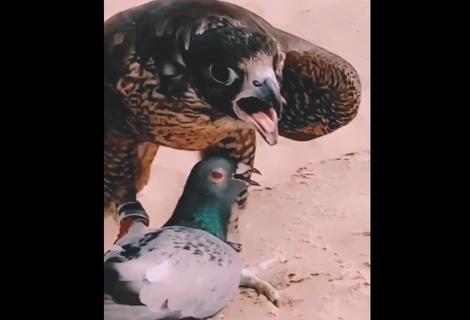 در ویدئو زیر ، مشاهده می نمایید که یک شاهین کبوتر را گرفته و از خستگی تند تند نفس می کشد .