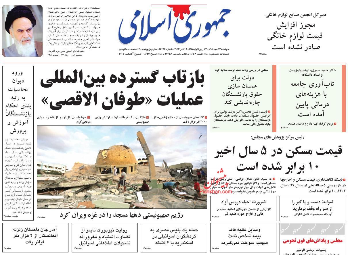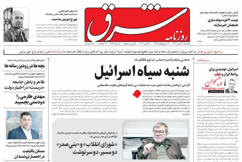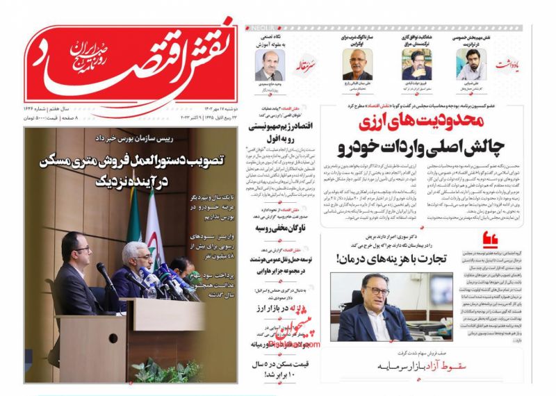 صفحه نخست روزنامه‌های امروز دوشنبه 17 مهر 1402