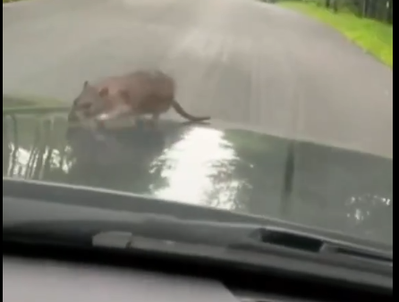 یک موش بزرگ راننده یک خودروی BMW را در حین سفر وسط جاده غافلگیر کرد.