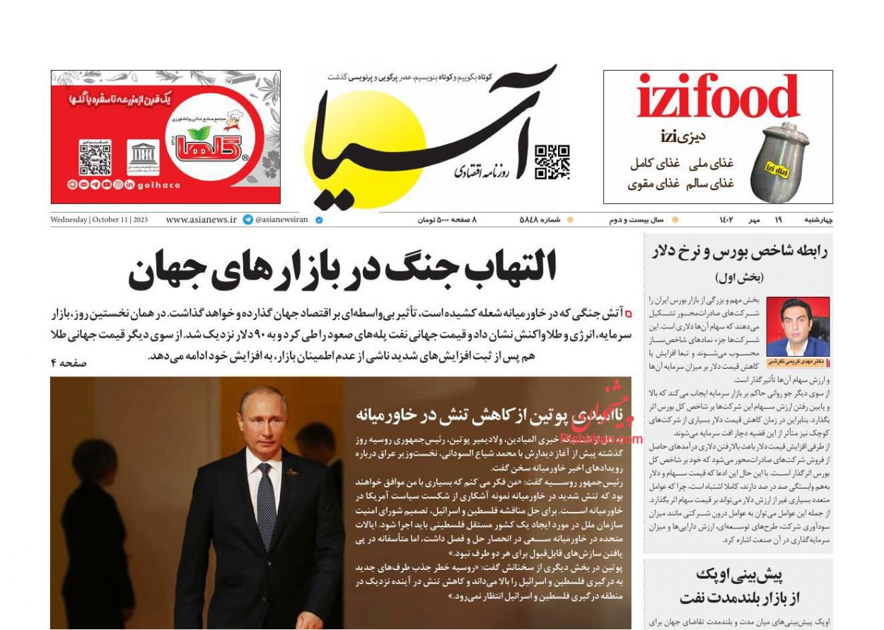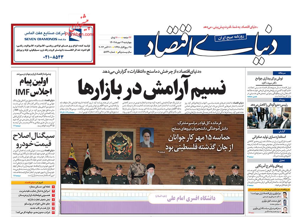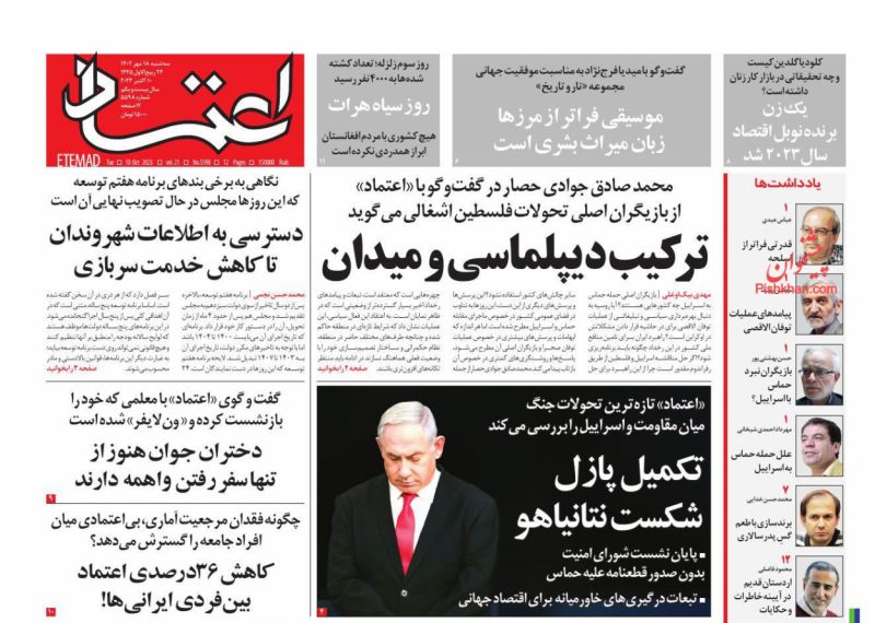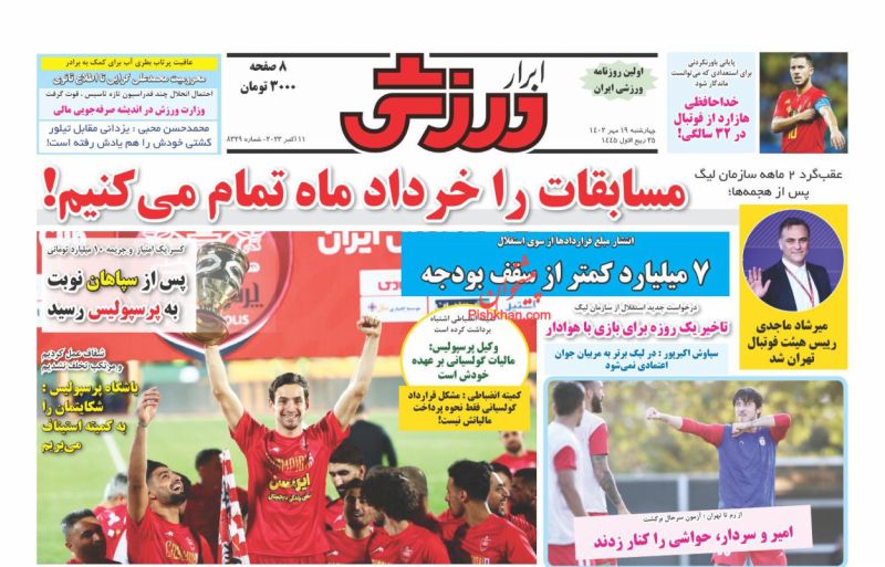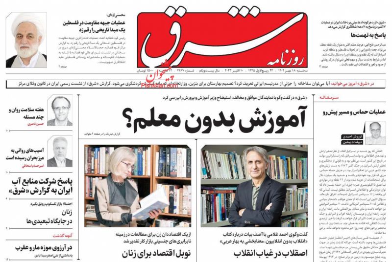 صفحه نخست روزنامه‌های امروز چهارشنبه 19 مهر 1402