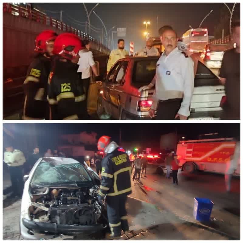 رئیس سازمان آتش نشانی و خدمات ایمنی شهرداری گرگان ادامه داد : حادثه اول حوالی ساعت ۲۲ در زیر گذر میدان معلم به سامانه ۱۲۵ اعلام گردید که ایستگاه چهارعملیاتی به محل حادثه اعزام شد و پس از حضور در محل ،شاهد تصادف زنجیره ای چند خودرو و موتورسیکلت که متاسفانه منجر به فوت راکب موتور شده ، بودند.