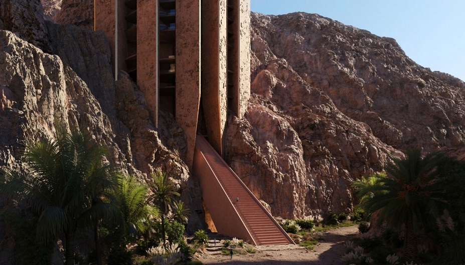 هتل «اوسیس» نیز که توسط یک معمار ایتالیایی طراحی شده، شبیه خوشهای از اشکال هندسی است که انگار از دل صخرهها سر برآوردهاند. طبق گفتۀ مسئولان پروژه، این هتل شامل باغهایی معلق، یک عرشه برای تماشای چشمانداز و یک استخر بر روی بام خواهد بود.