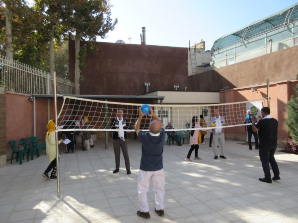 سالمندان در حال بازی والیبال در مرکز روزانه رنگین کمان سپید