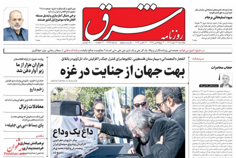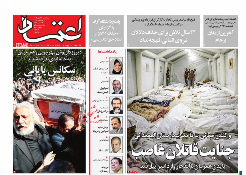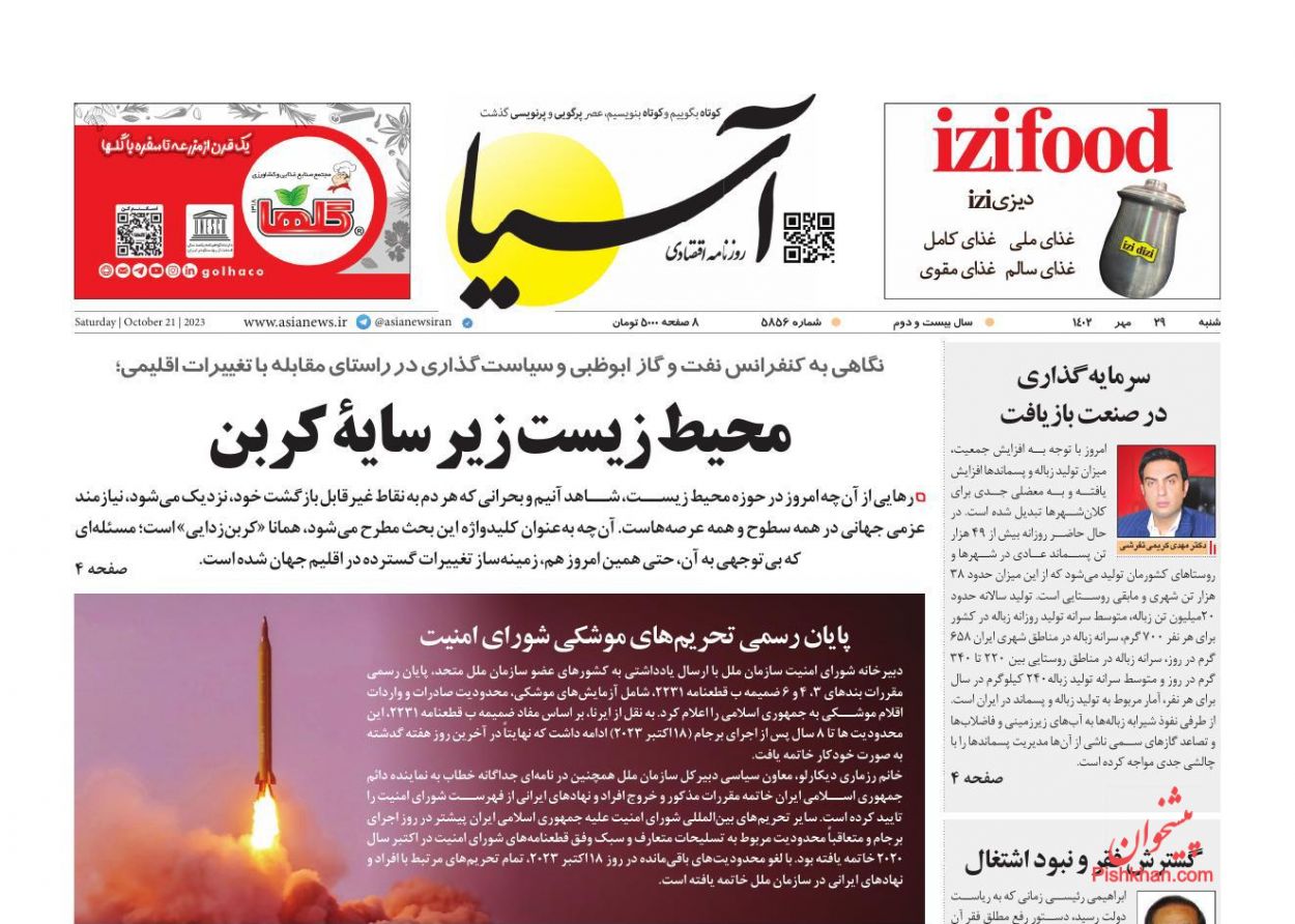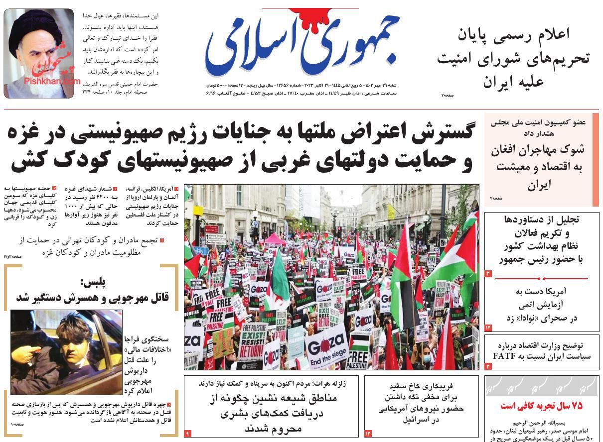 صفحه نخست روزنامه‌های امروز شنبه 29 مهر 1402
