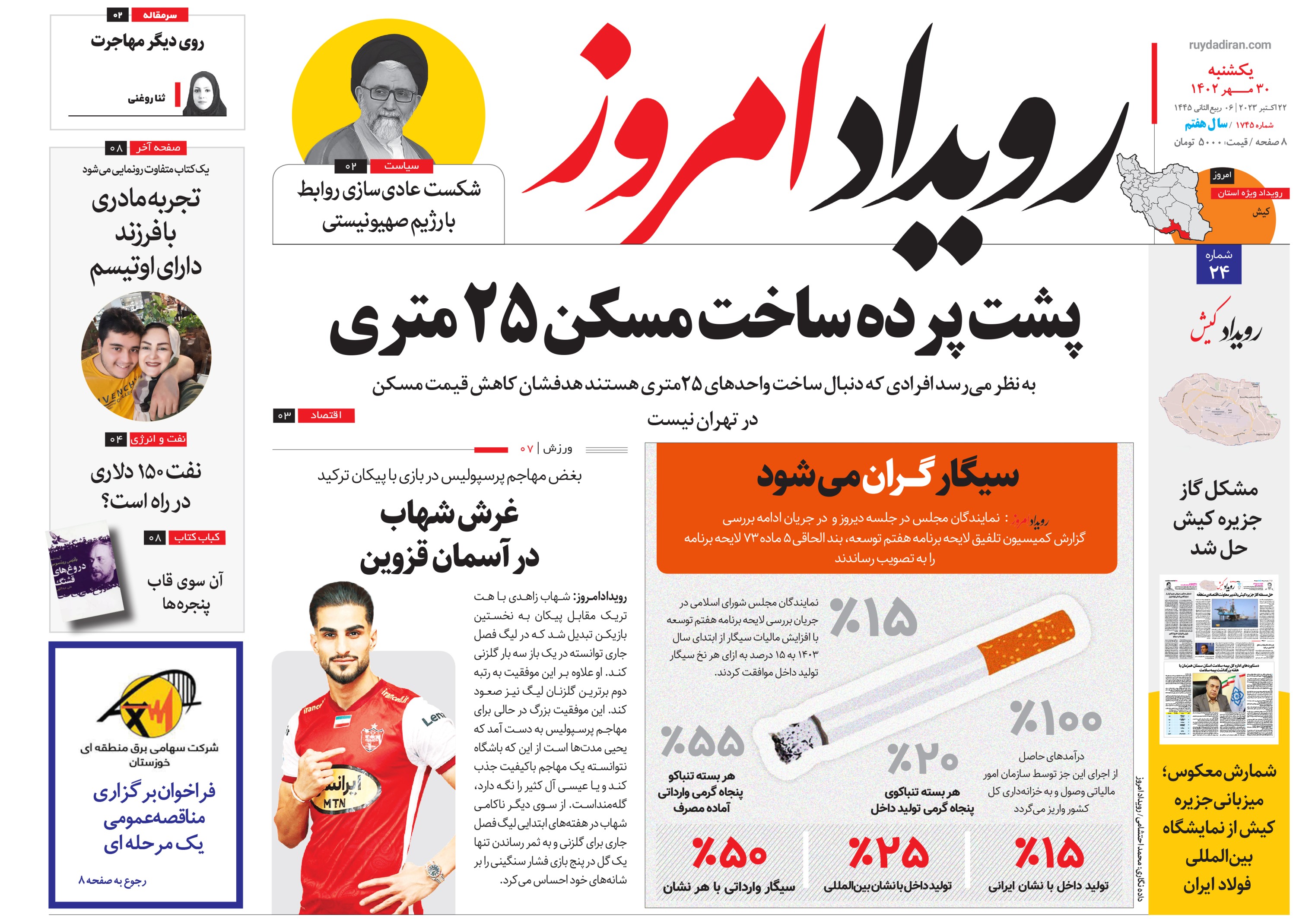 کد: 256507 | 30 مهر 1402 ساعت 00:00 روزنامه رویداد امروز یکشنبه ۳۰ مهر ۱۴۰۲ اشتراک گذاری گزارش خطا × اشتراک گذاری مطلب: روزنامه رویداد امروز یکشنبه ۳۰ مهر ۱۴۰۲ فیسبوک اینستاگرام تلگرام ایکس (توییتر) ایتا بله روبیکا × گزارش خطا برای گزارش خطا با پست الکترونیکی: ruydadiran[at]gmail.com در ارتباط باشید