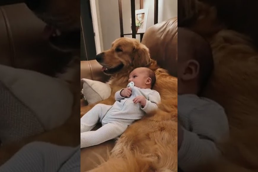 (ویدئو) شیوه هوشمندانه و بامزه سگ گلدن رتریور برای آرام نگه داشتن نوزاد انسان