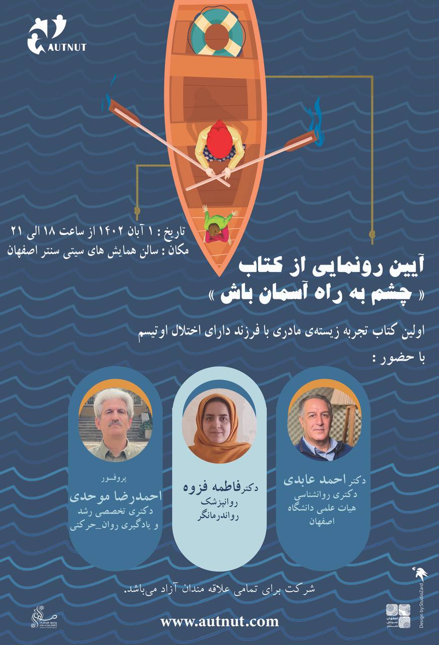 برای اولینبار در ایران، ناهید ادیب مادر فرزندی دارای اختلال اوتیسم، تجربه زیستة خود را در قالب یک کتاب منتشر کرده که قرار است دوشنبه 1 آبان ماه اولین رونمایی آن در اصفهان، سالن همایشهای سیتی سنتر از ساعت 18 الی 21 برگزار شود. در آیین رونمایی کتاب «چشم به راه آسمان باش»، دکتر احمد عابدی دکتری روانشناسی و عضو هیئت علمی دانشگاه اصفهان، فاطمه فزوه رواندرمانگر و روانپزشک و پروفسور احمدرضا موحدی دکتری تخصصی رشد و یادگیری روان-حرکتی حضور داشته و درباره اختلال طیف اوتیسم و این کتاب سخرانی میکنند.