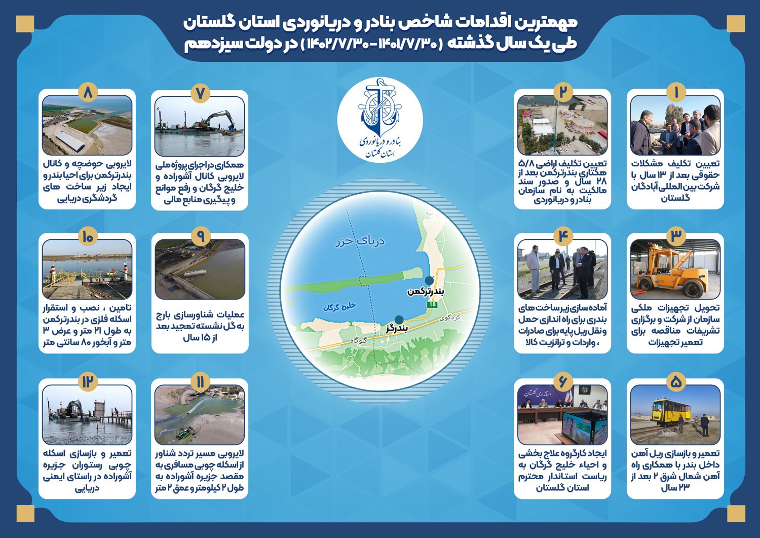 مهمترین اقدامات شاخص بنادر و دریانوردی استان گلستان  در دولت سیزدهم