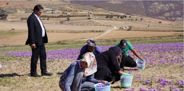 بازدید حمزه کرایلو مدیرکل آموزش فنی و حرفه ای استان گلستان از مزارع کشت زعفران روستای وامنان در حاشیه بازدید از روند برگزاری اولین دوره مسابقات آزاد و جشنواره ملی عکس مهارتی برداشت زعفران