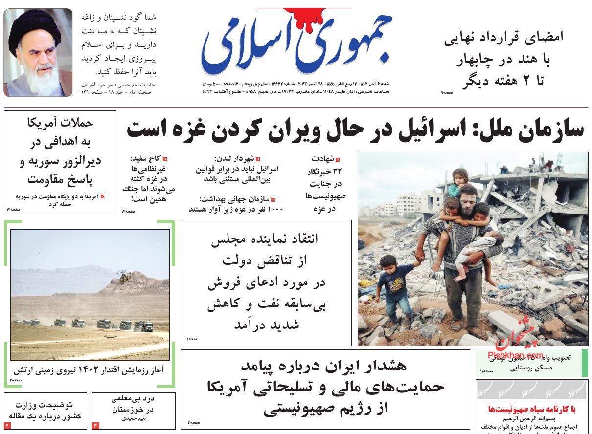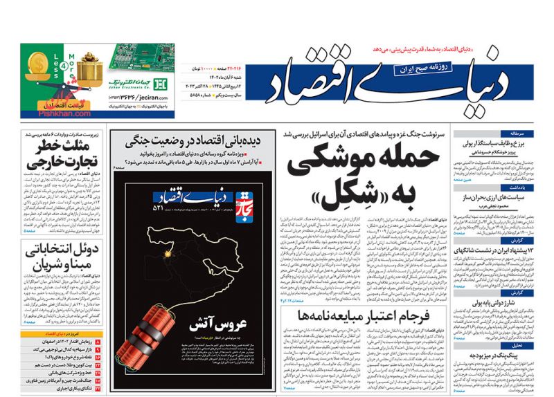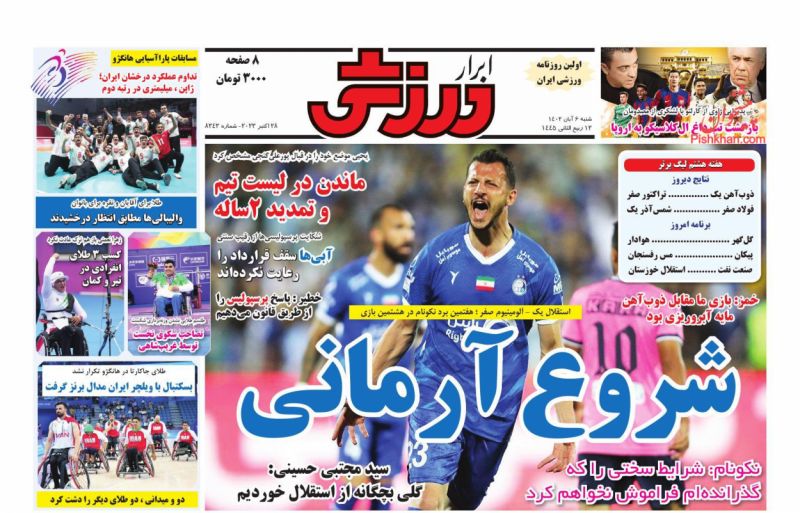 صفحه نخست روزنامه‌های امروز شنبه 6 آبان 1402